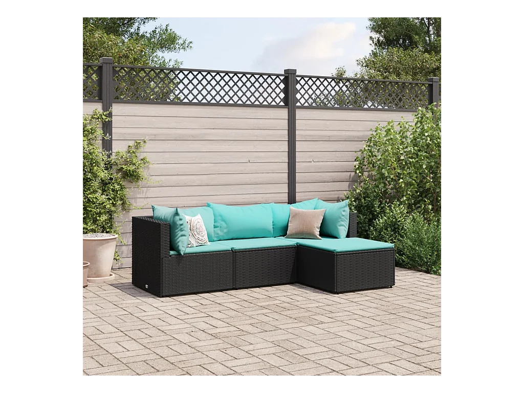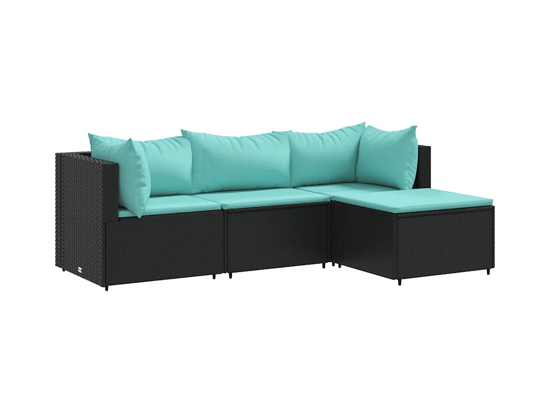 Juego de jardín con cojines 4 piezas ratán sintético negro