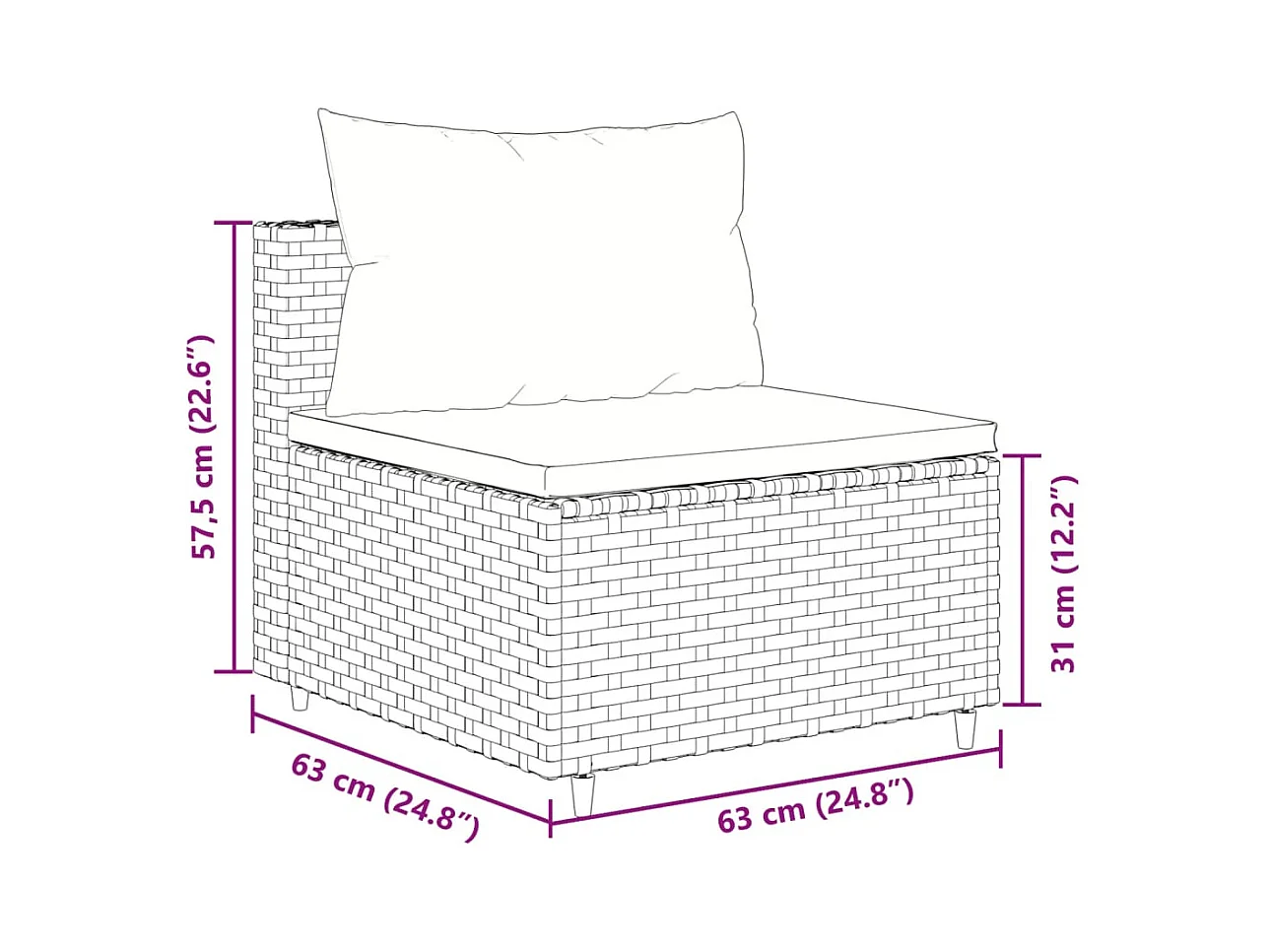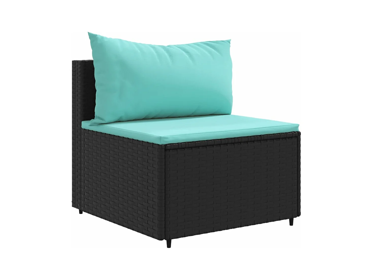 Set de sofás de jardín 6 piezas y cojines ratán sintético negro