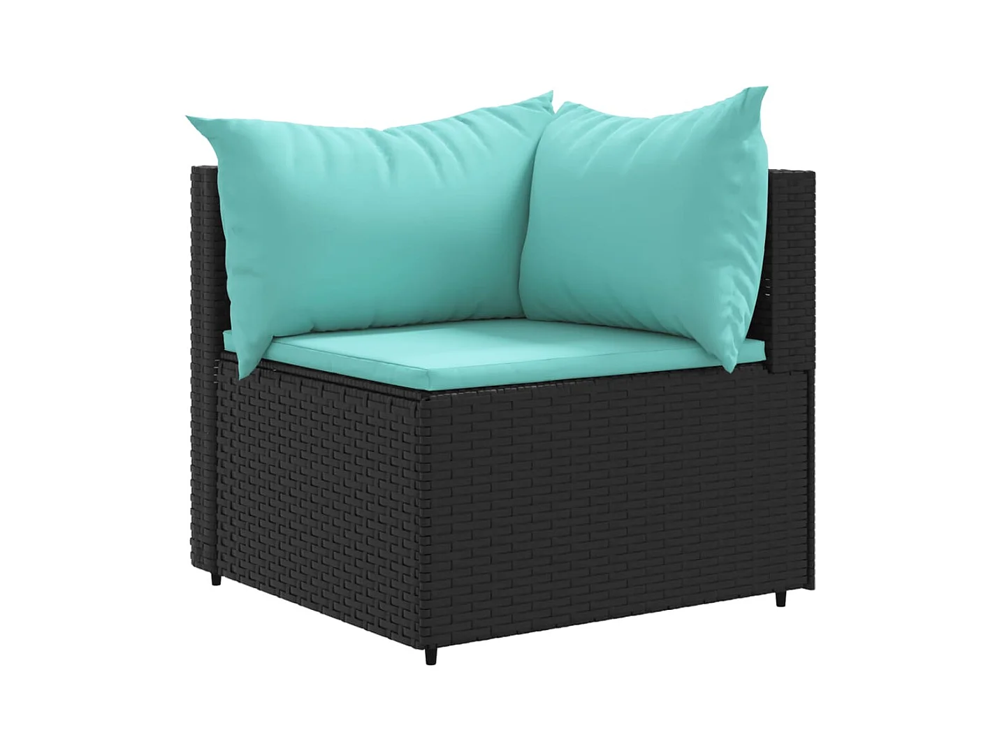 Set muebles de jardín 6 piezas y cojines ratán sintético negro