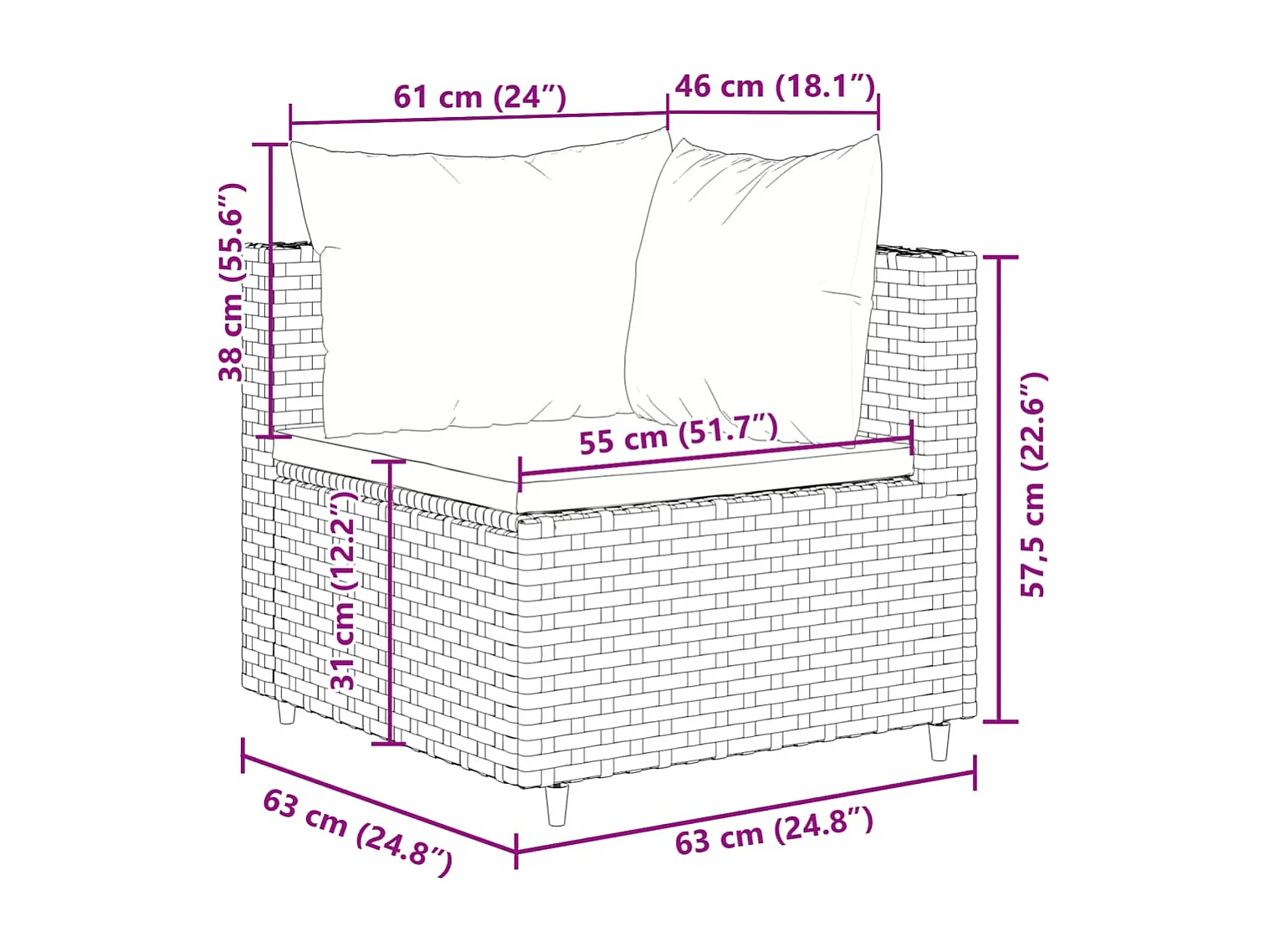Set de muebles de jardín 5 piezas y cojines ratán sintético negro