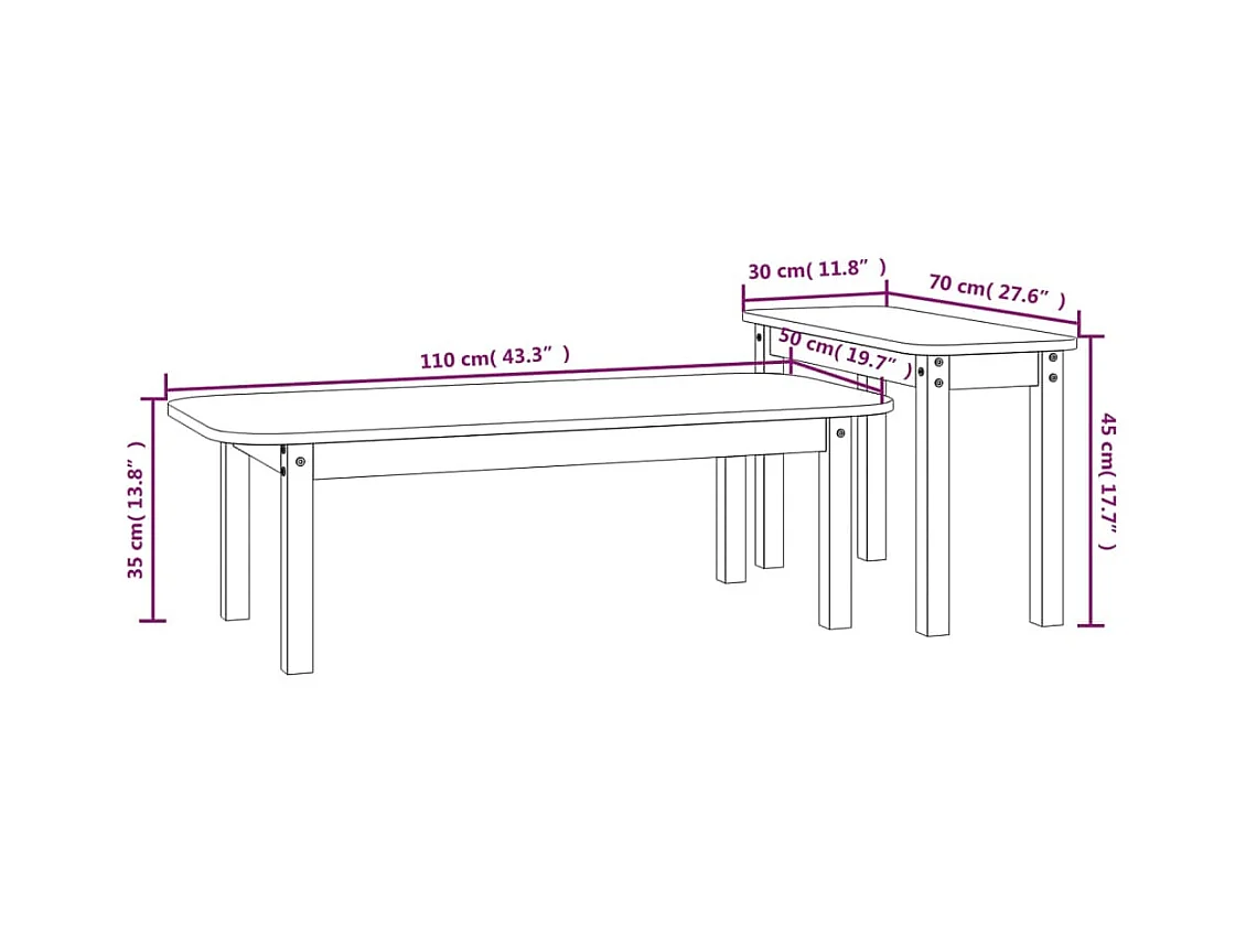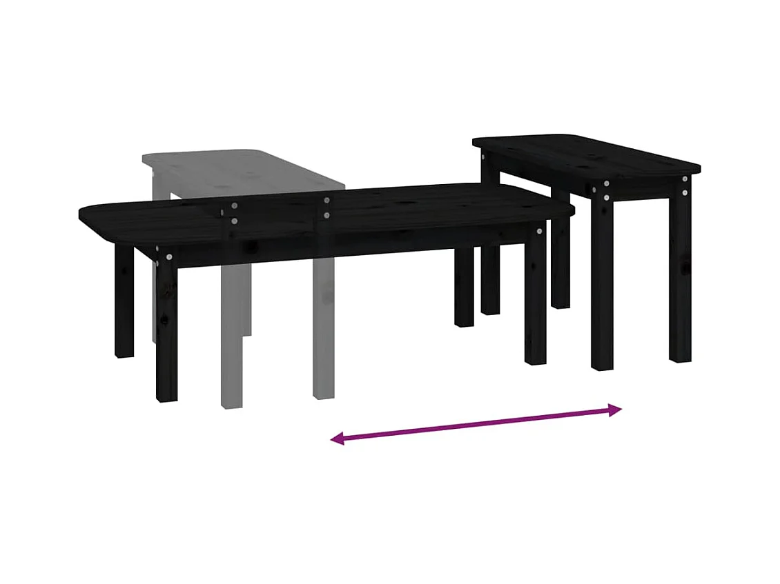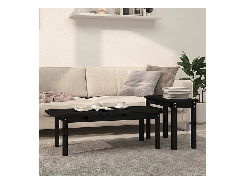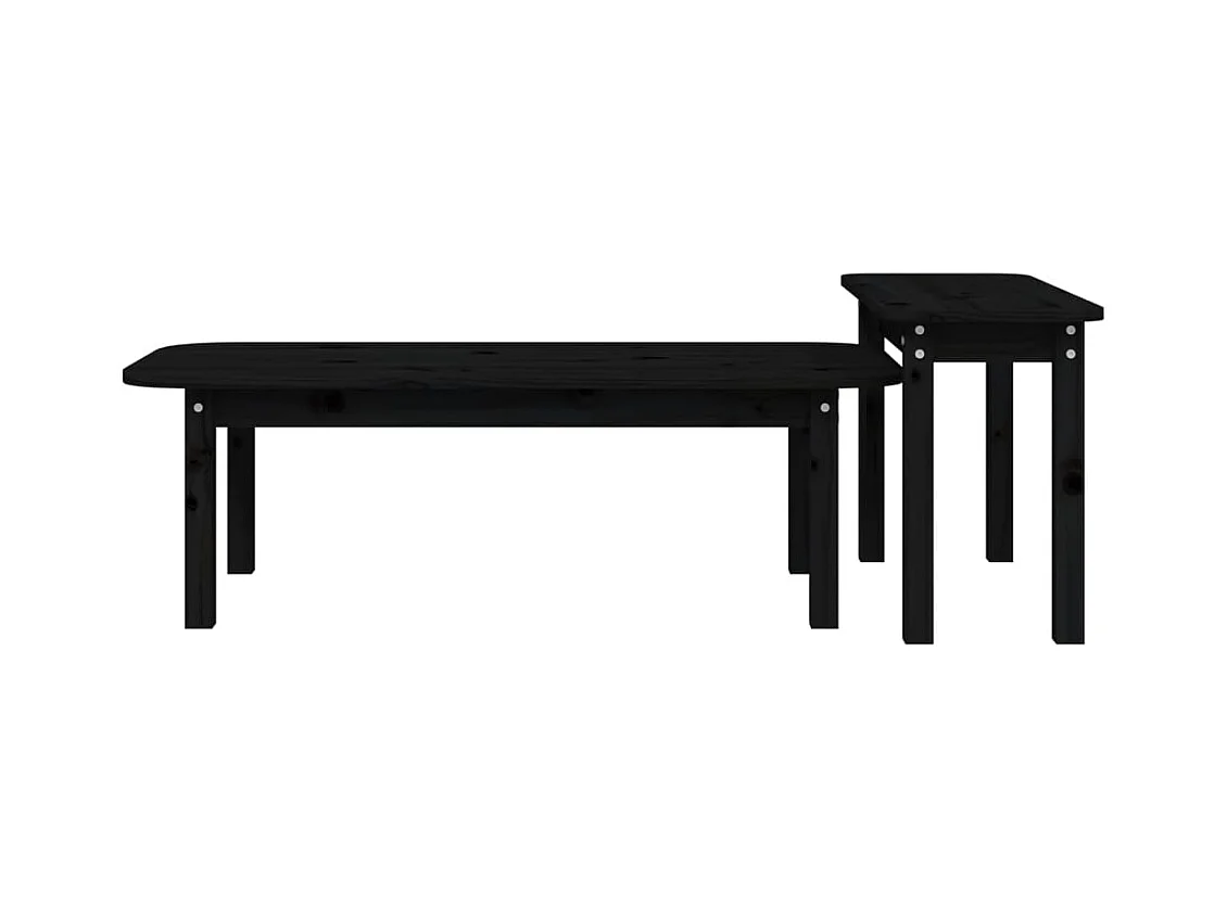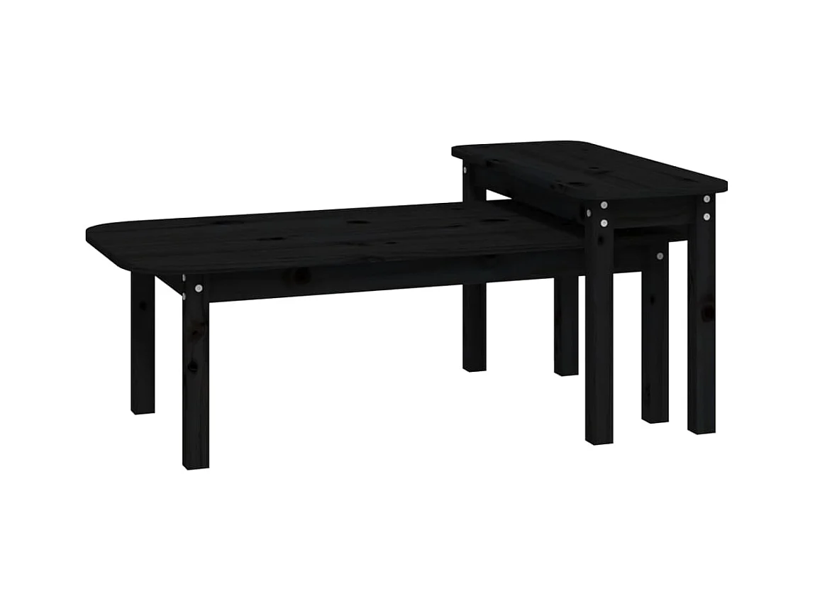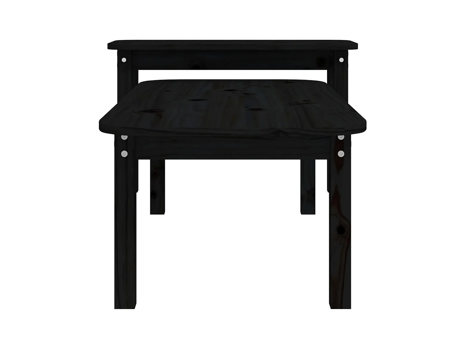 Juego de mesa de centro dorada de 2 piezas, madera de pino maciza negra