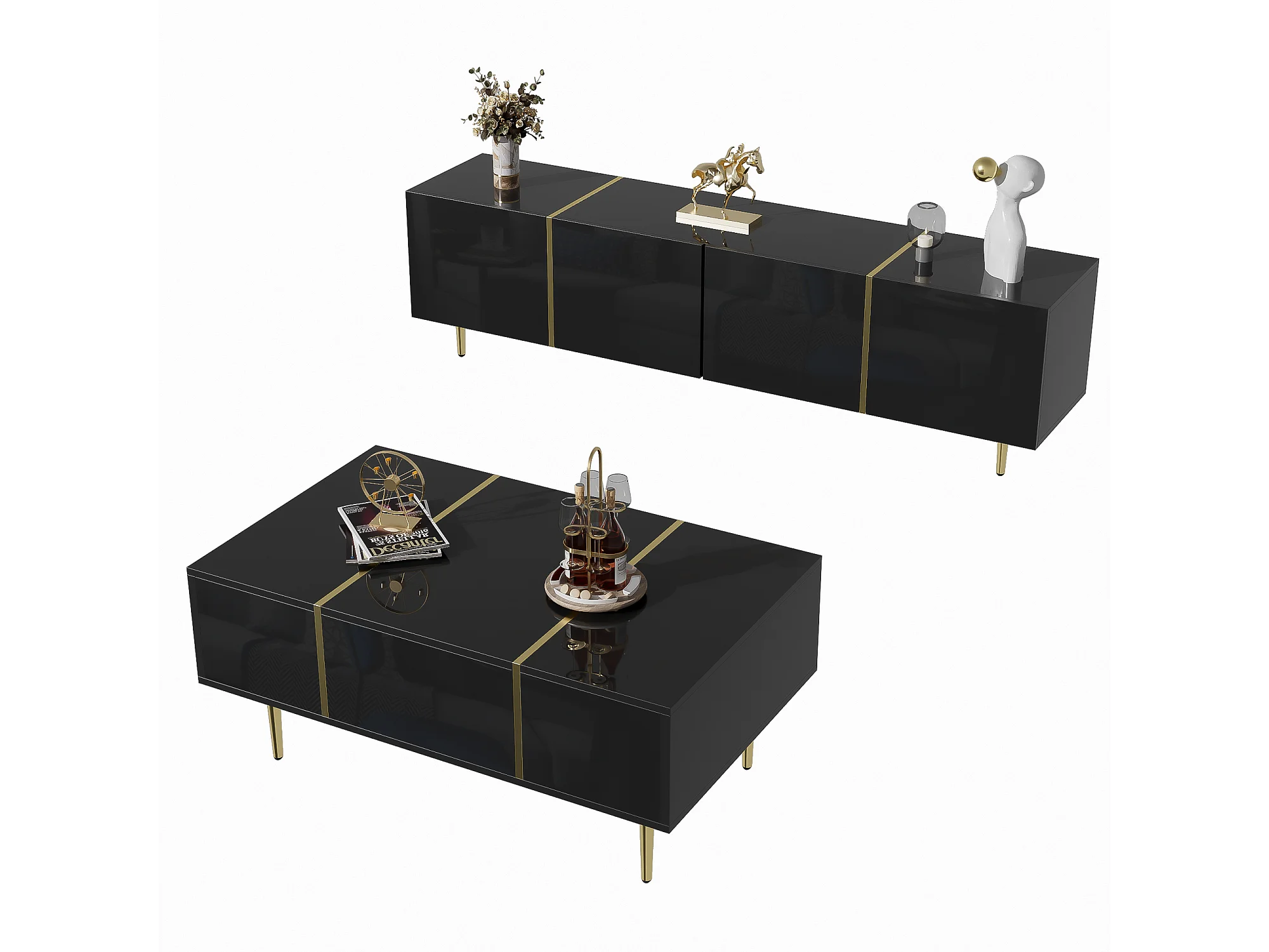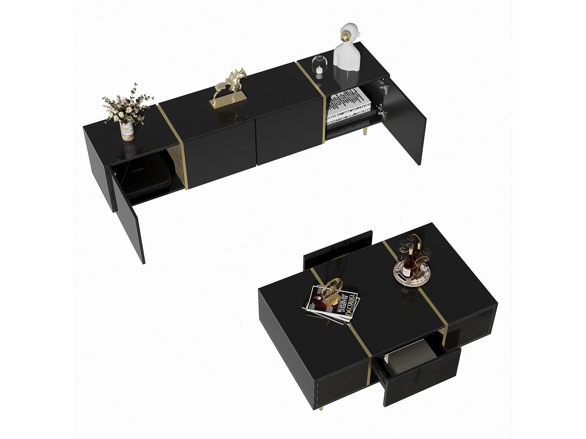 Juego de mesa de centro y mueble para TV Brilliance, gabinetes de almacenamiento, negro