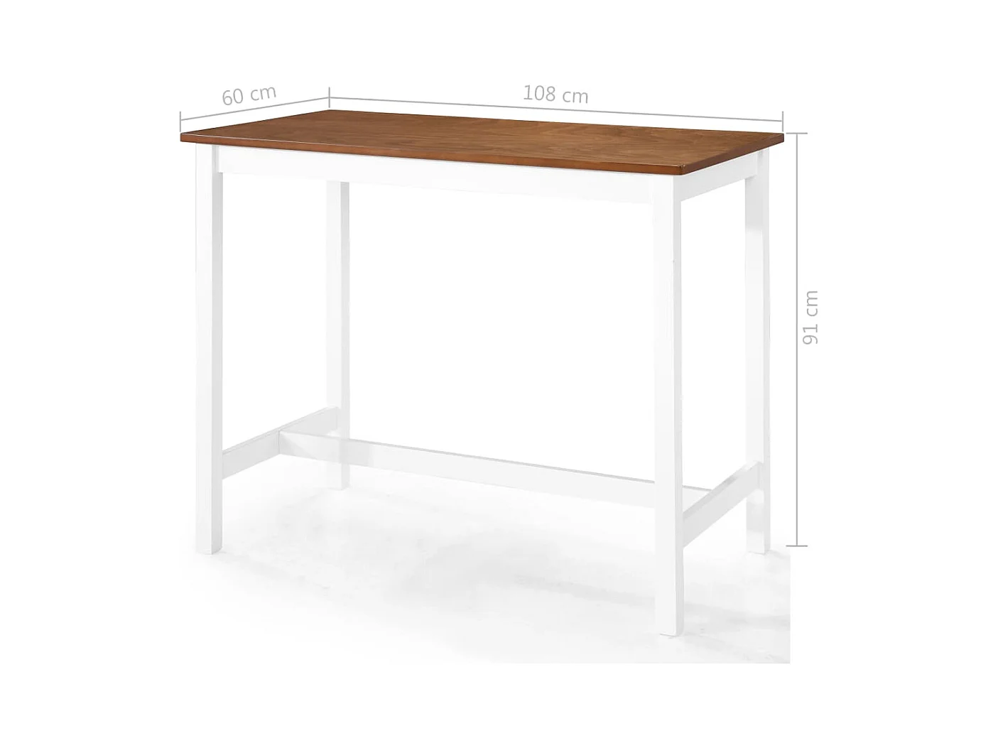 Juego de mesa y sillas de bar de 3 piezas, madera maciza, marrón y blanco