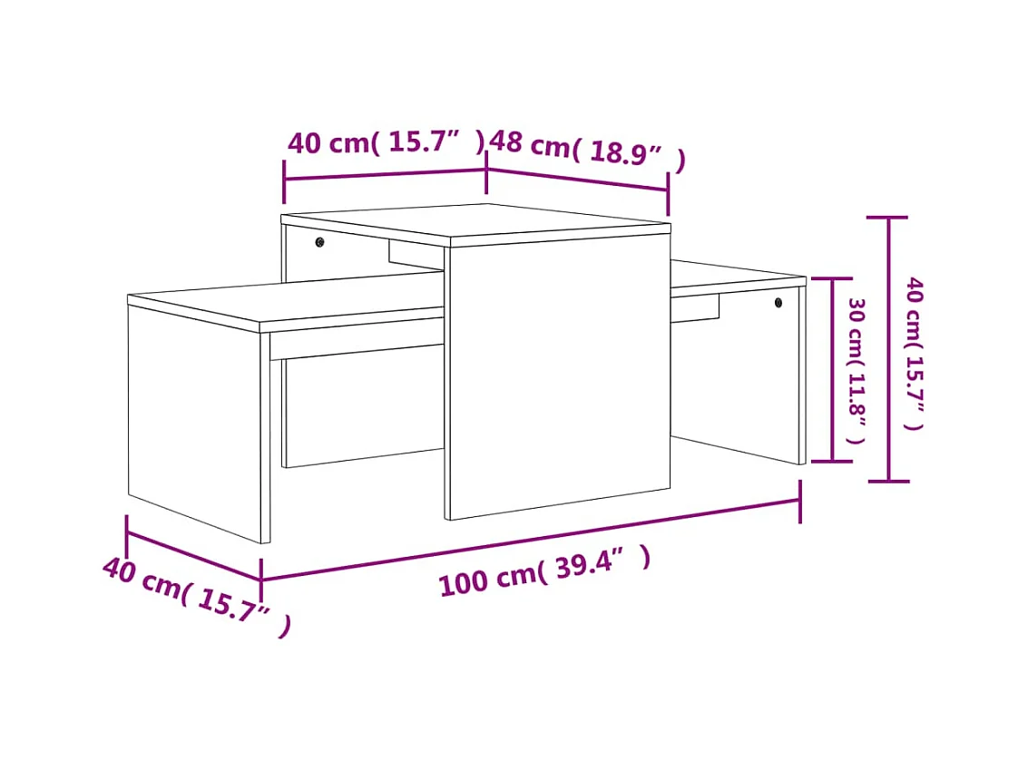 Juego de mesas de centro Gold Aglomerado gris hormigón 100x48x40 cm