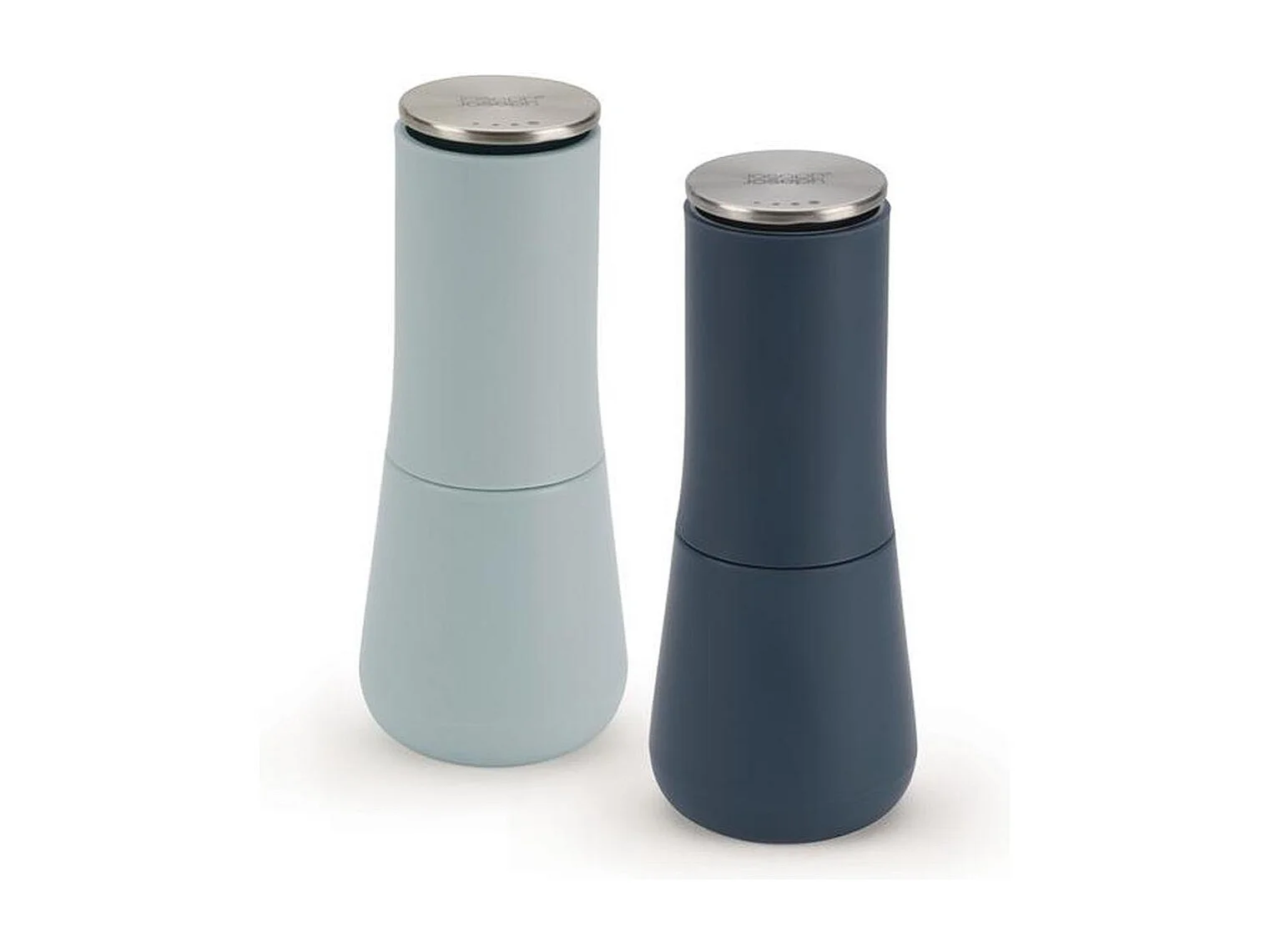 Juego de molinillos de sal y pimienta Milltop™ Editions Sky Joseph Joseph, diseño antiderrame, fácil de rellenar y ajustar