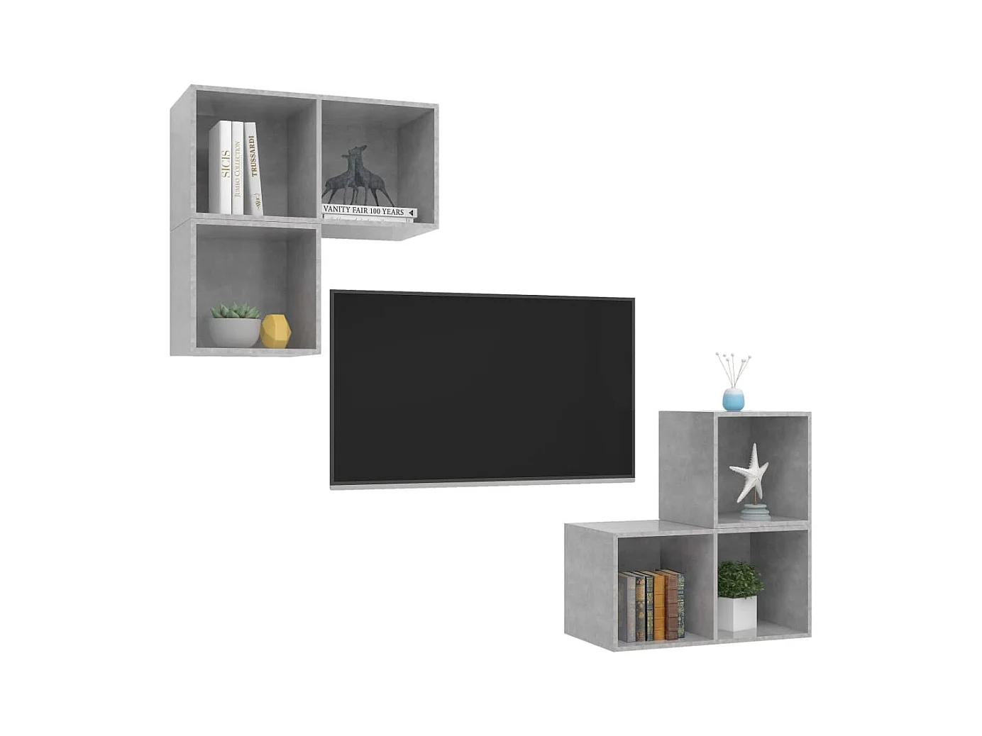 Muebles de salón | Gabinetes de TV | Muebles de TV de pared 2 uds madera ingeniería gris hormigón