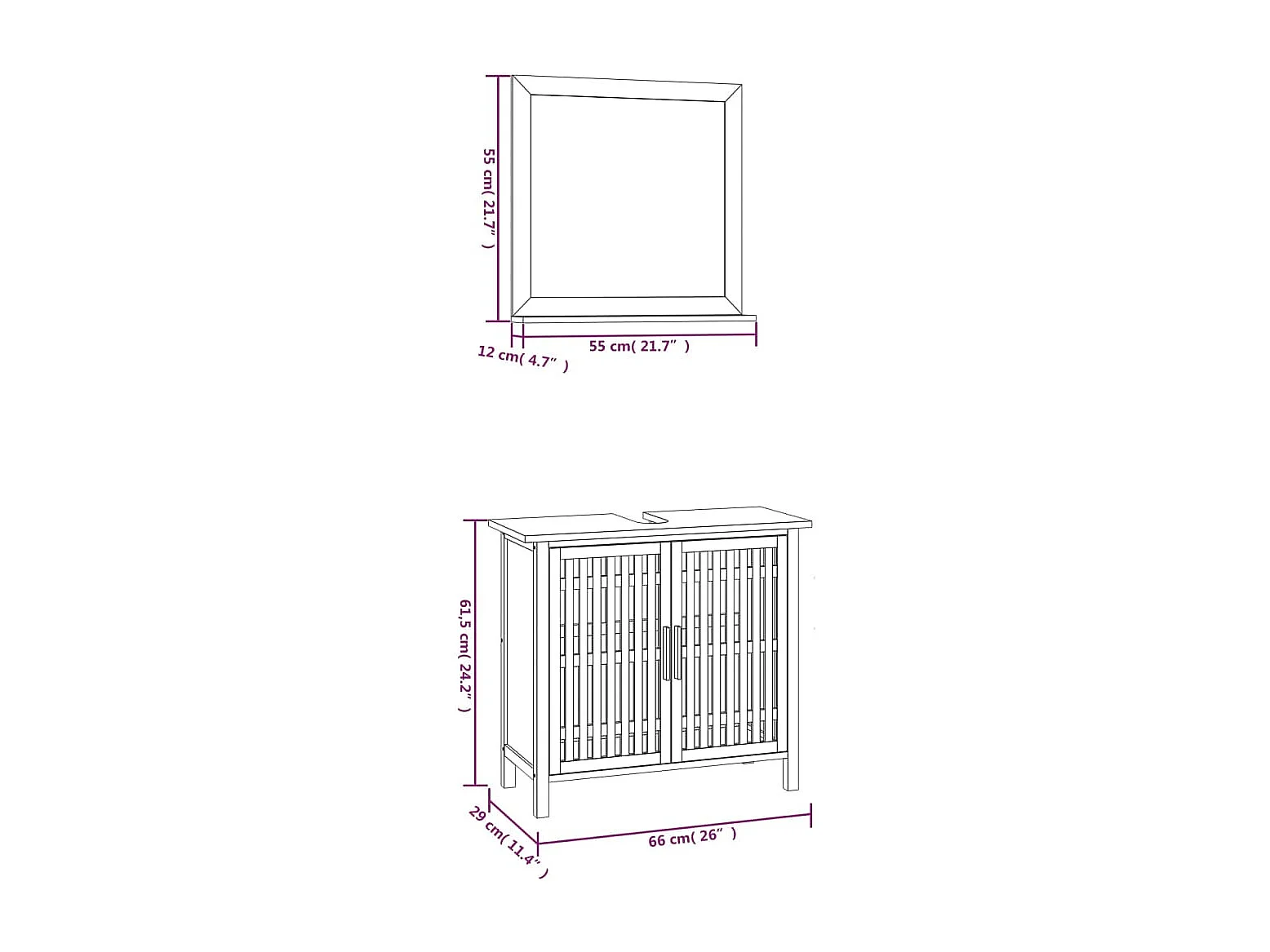 Juego de muebles de baño de 2 piezas de madera maciza de nogal