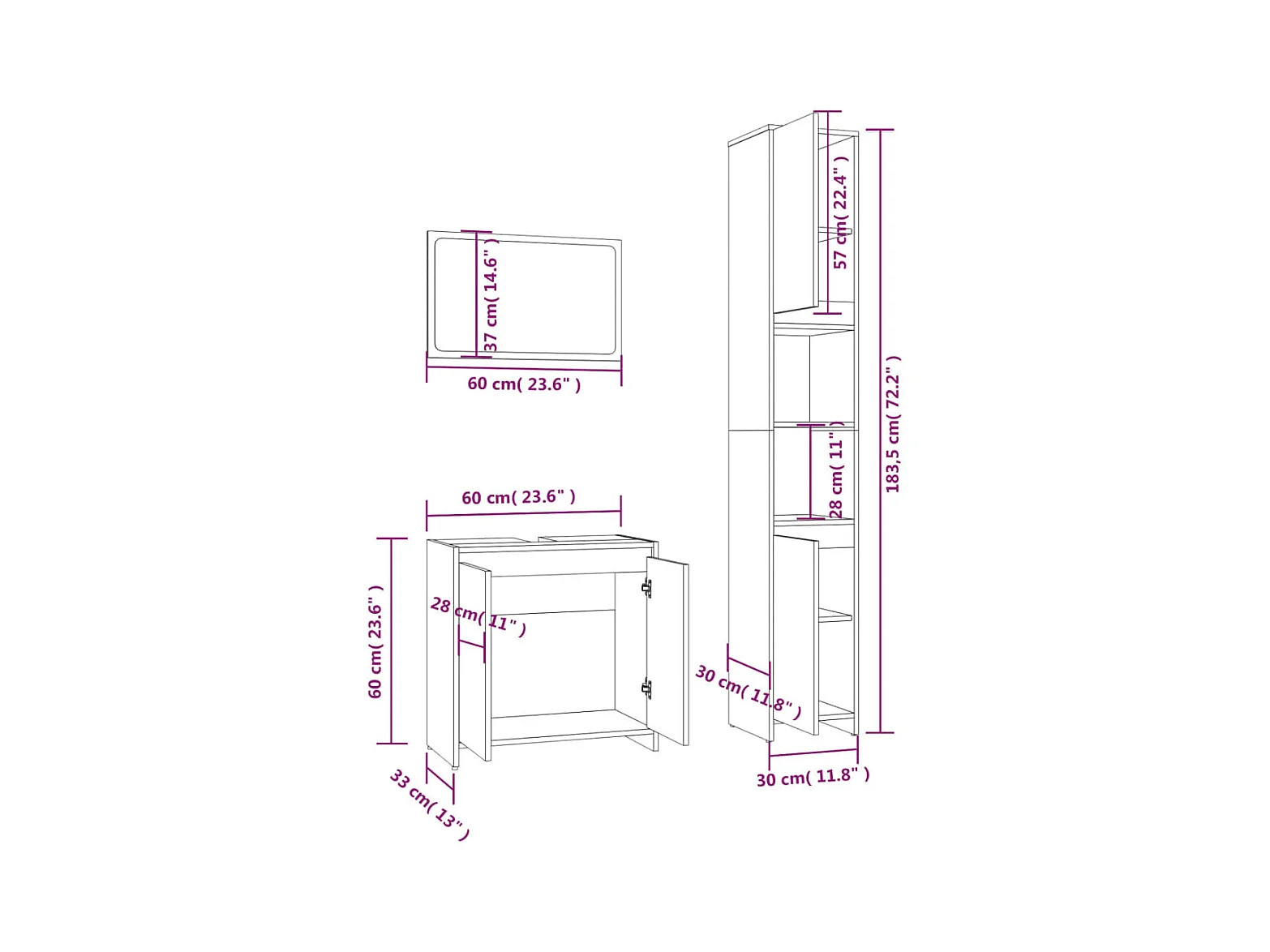 Juego de muebles de baño de 3 piezas Sonoma Grey