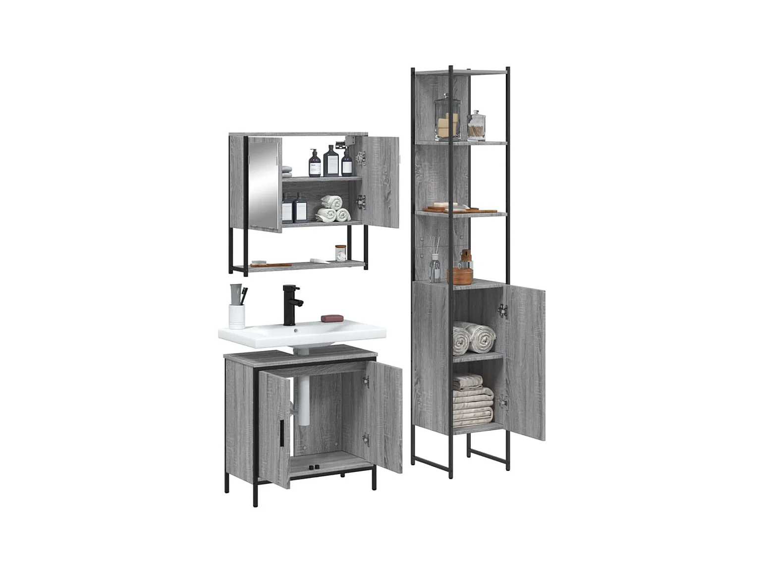 Juego de gabinetes de baño de 3 piezas en gris Sonoma