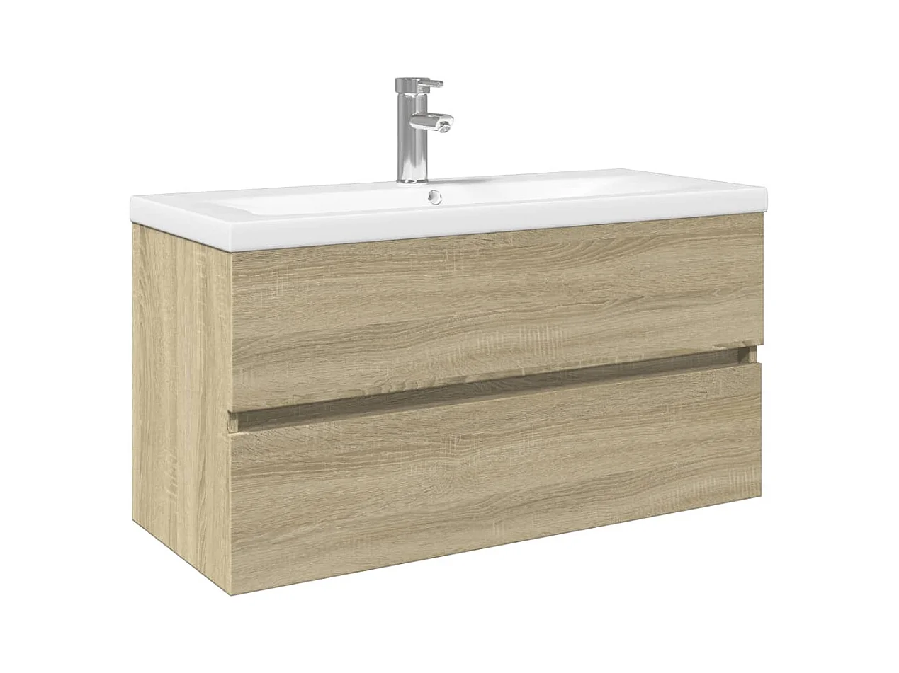 Set de muebles de baño 2 pzas cerámica y madera de ingeniería