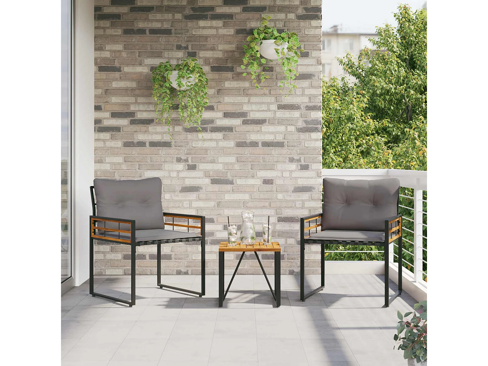 Juego de muebles de exterior con cojín 3 pcs Gris Claro