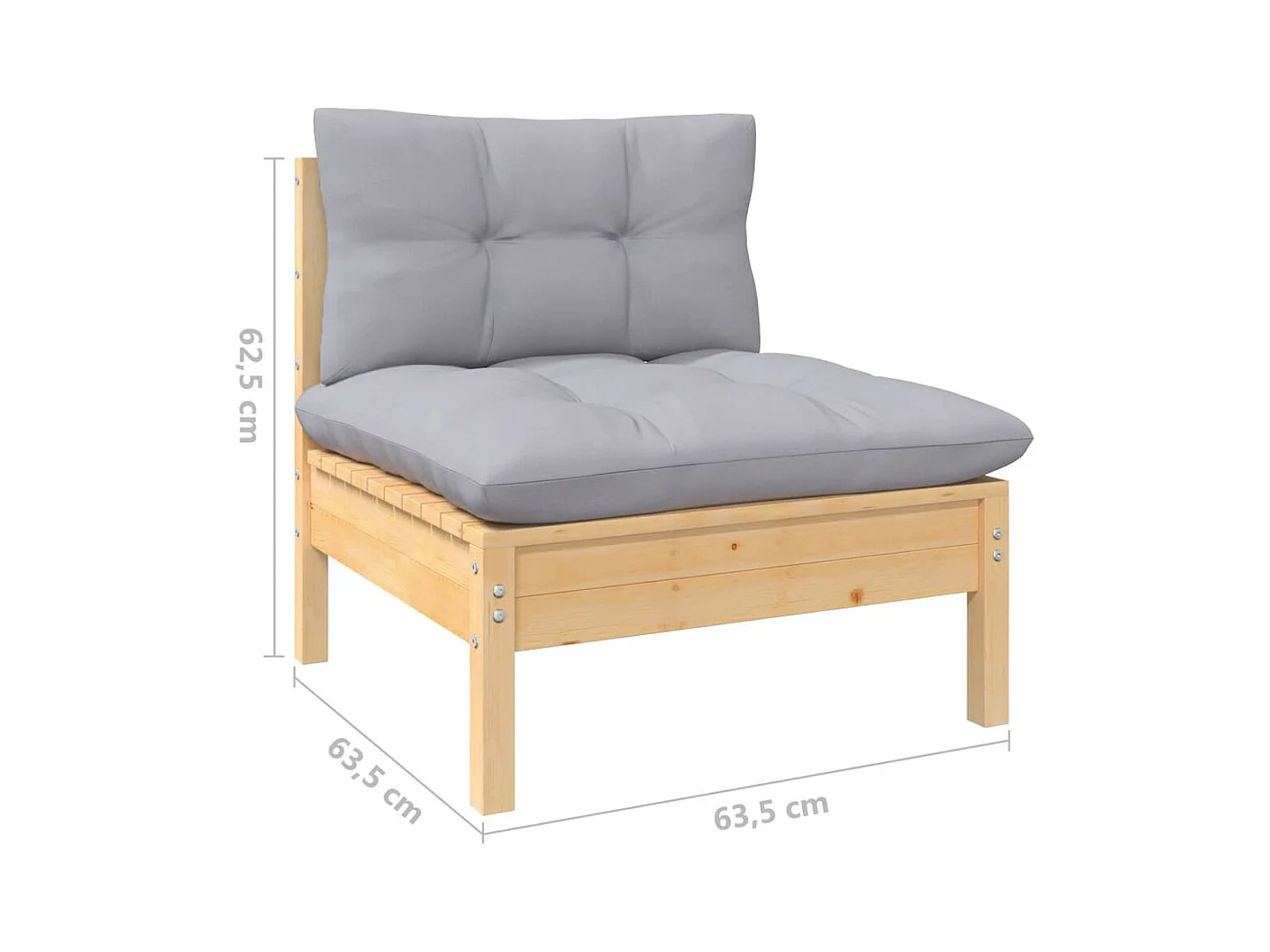 Juego de muebles de jardín 10 pzas y cojines madera pino gris