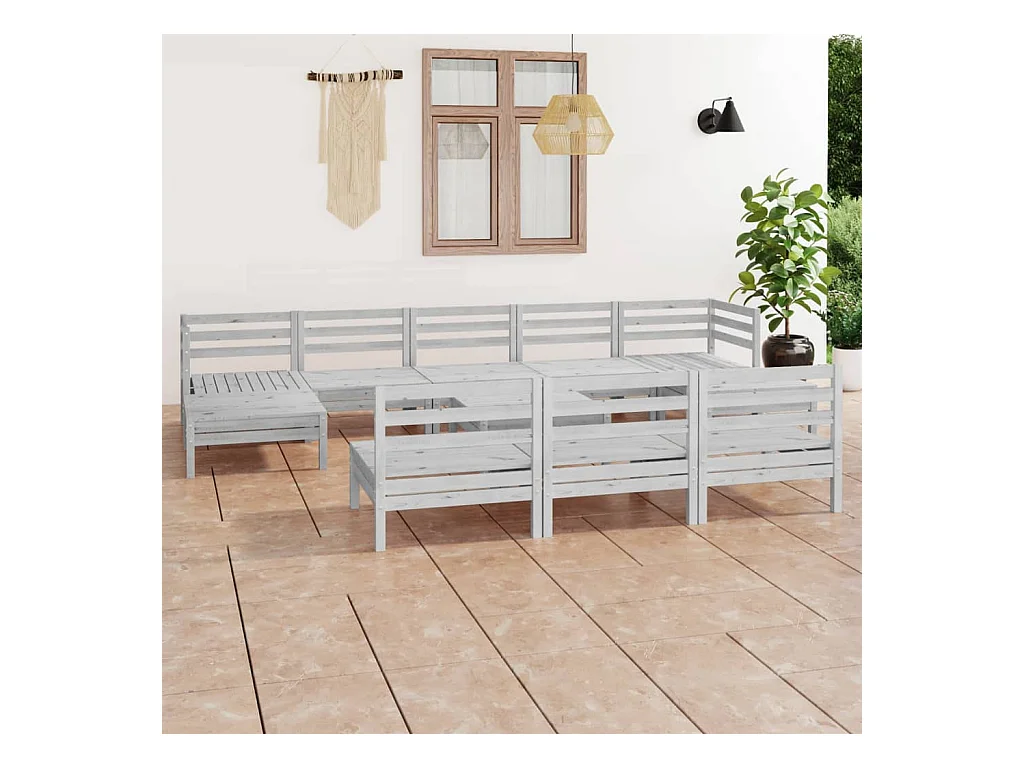 Muebles de jardín 9 pzas y cojines blanco madera maciza de pino