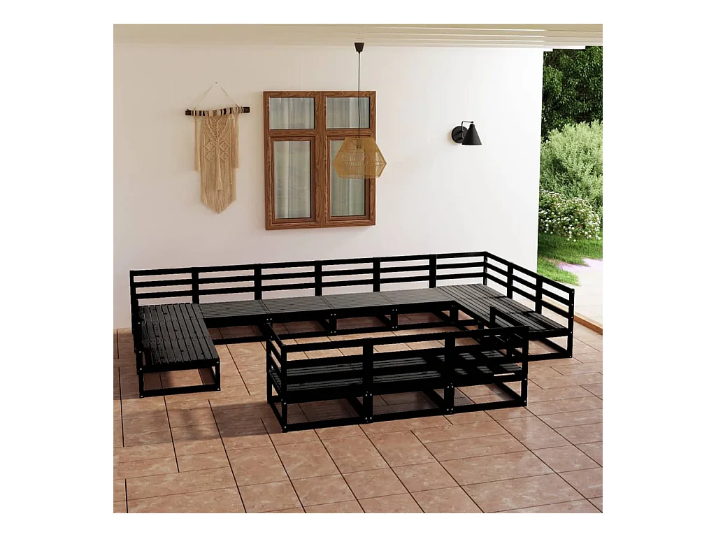Juego de muebles de jardín 13 piezas madera maciza de pino negro