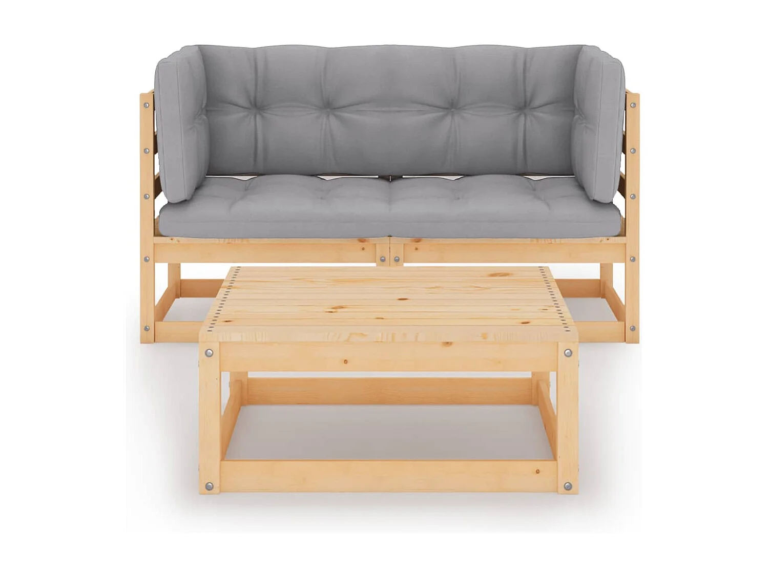 Juego de muebles de jardín 3 pzas y cojines madera pino maciza