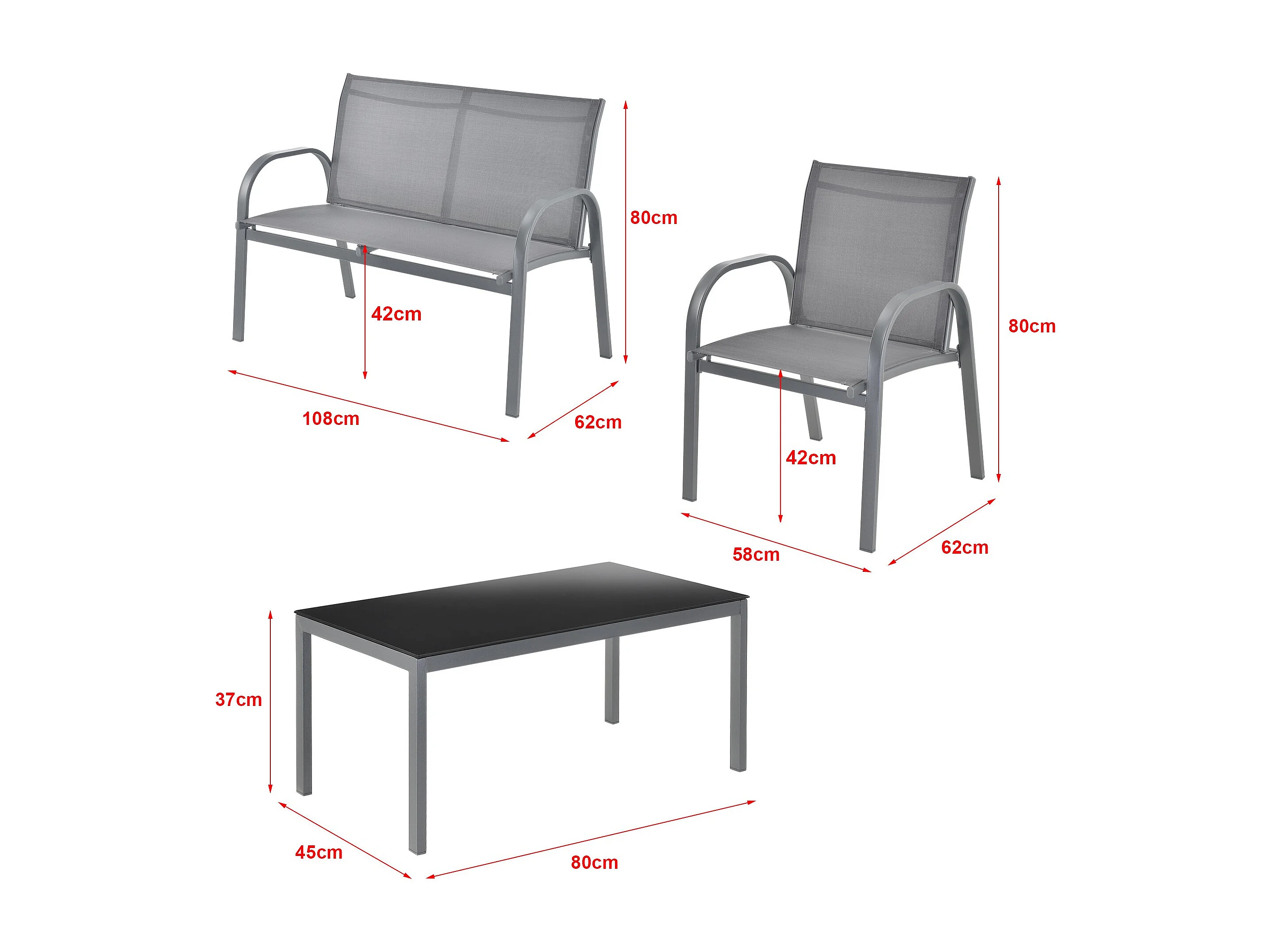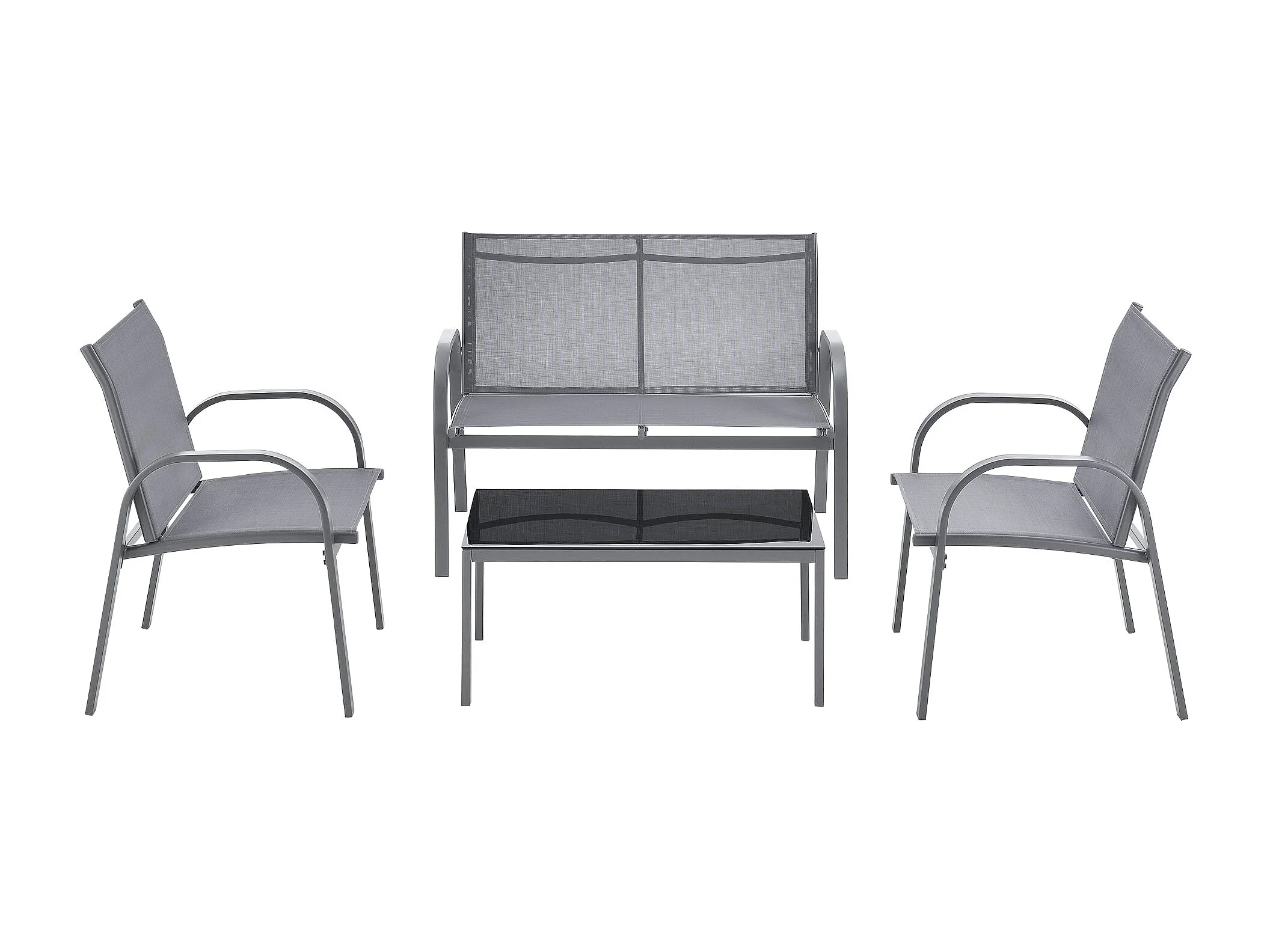 Juego de muebles de jardín 4 gagra acero PVC poliéster negro gris claro 03_0008232