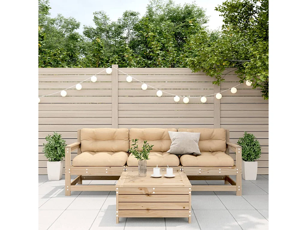 Juego de muebles de jardín 4 piezas y cojines madera maciza pino