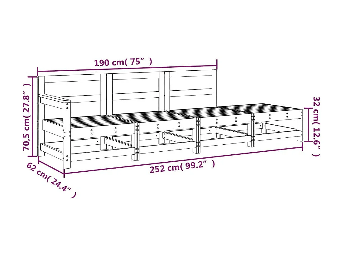 Muebles de jardín 4 piezas de madera de pino impregnada.