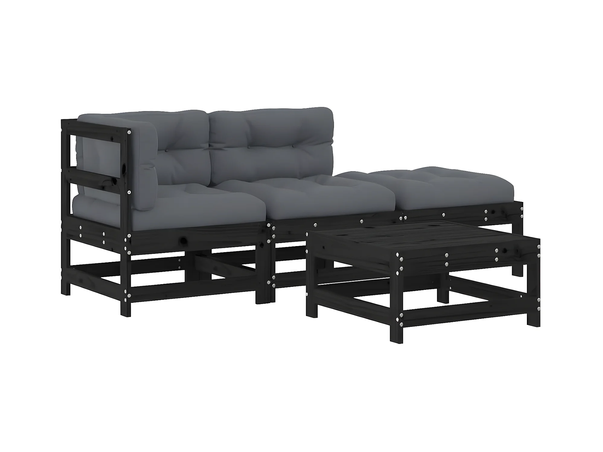Juego de muebles de jardín 4 pzas y cojines madera maciza negro