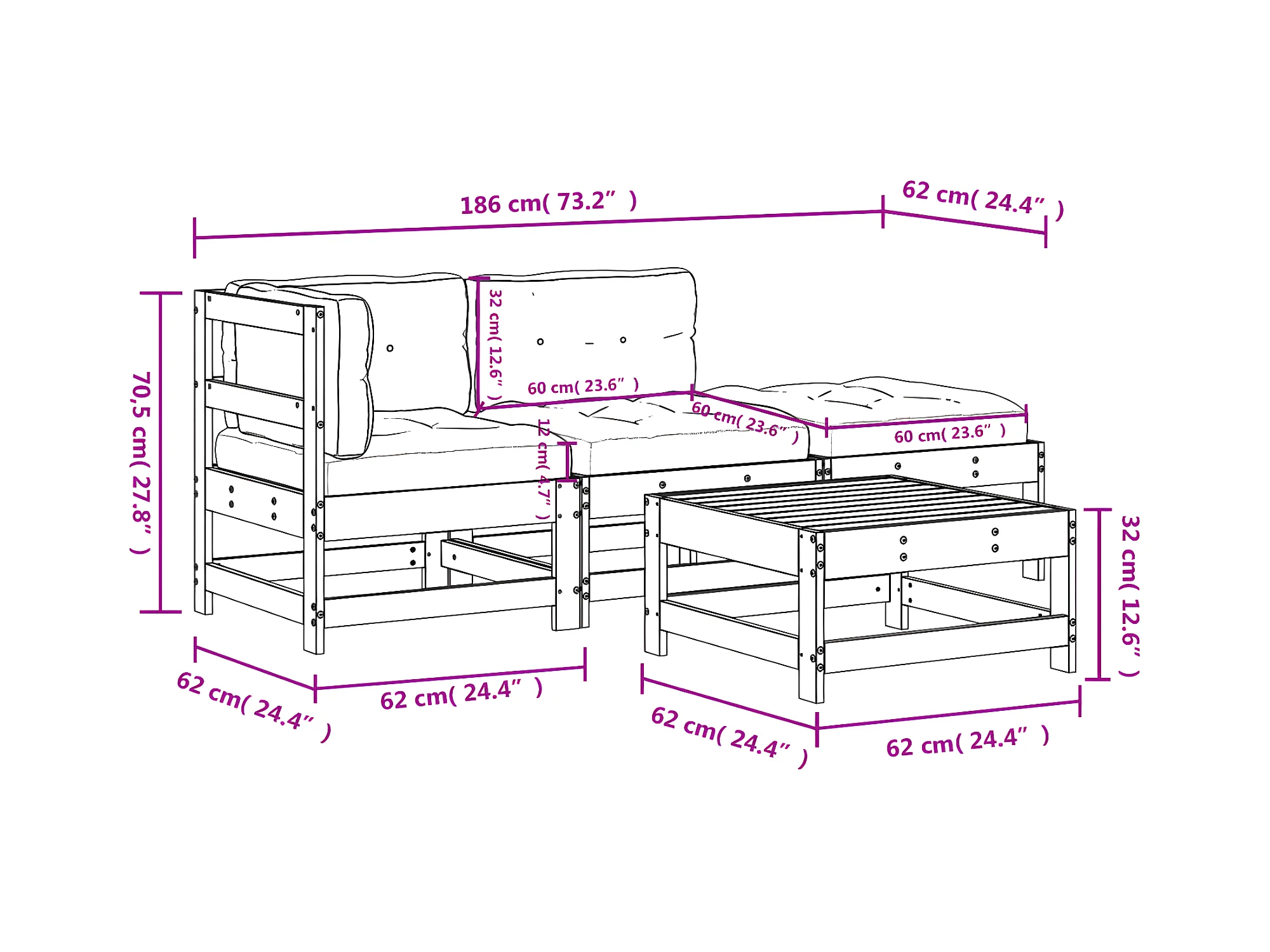 Conjunto de jardín - sofá 2+1+1 plazas
