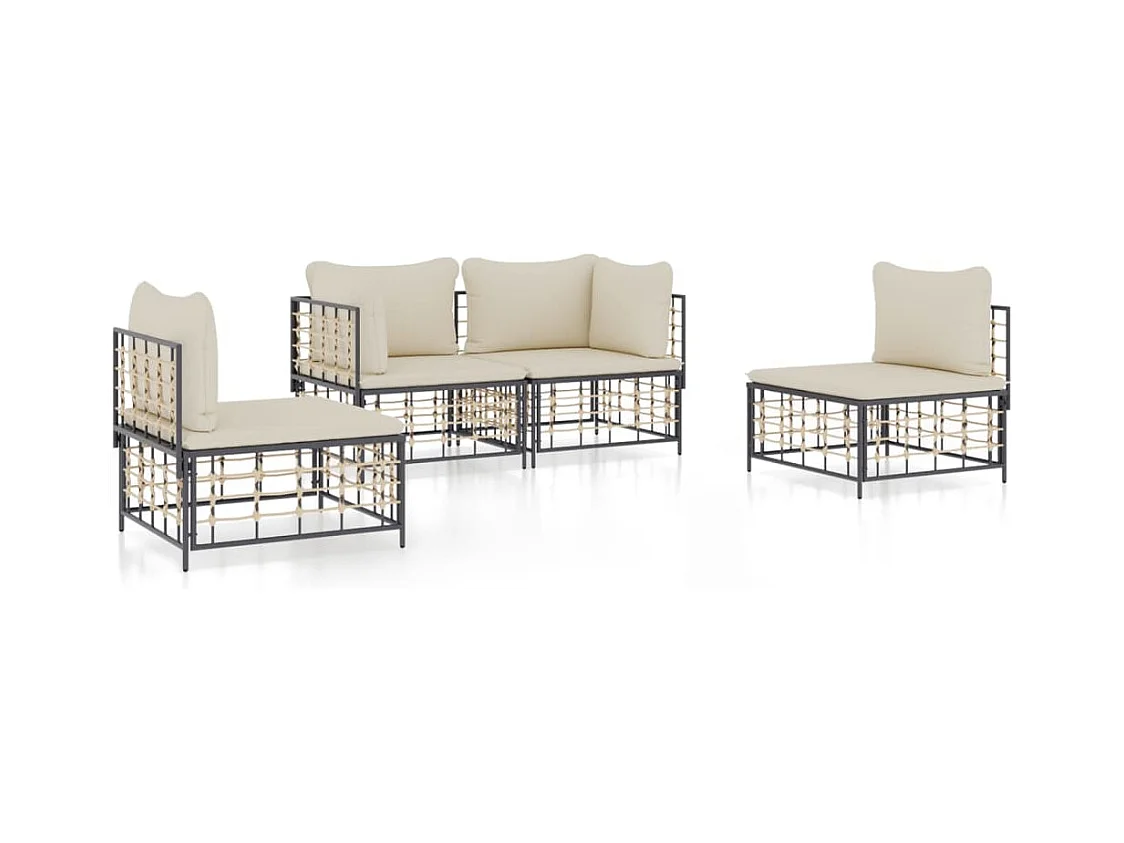 Juego de muebles de jardín 4 pzas y cojines ratán PE antracita