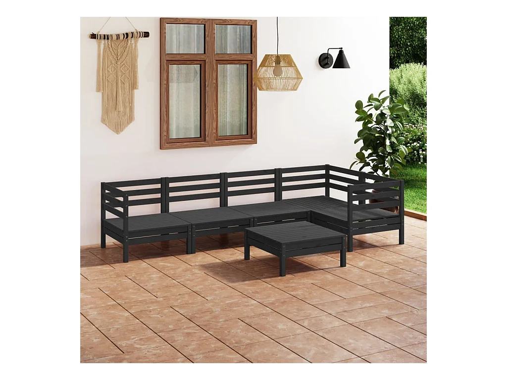 5 pzas Salón de jardín madera de pino maciza negro ES48150