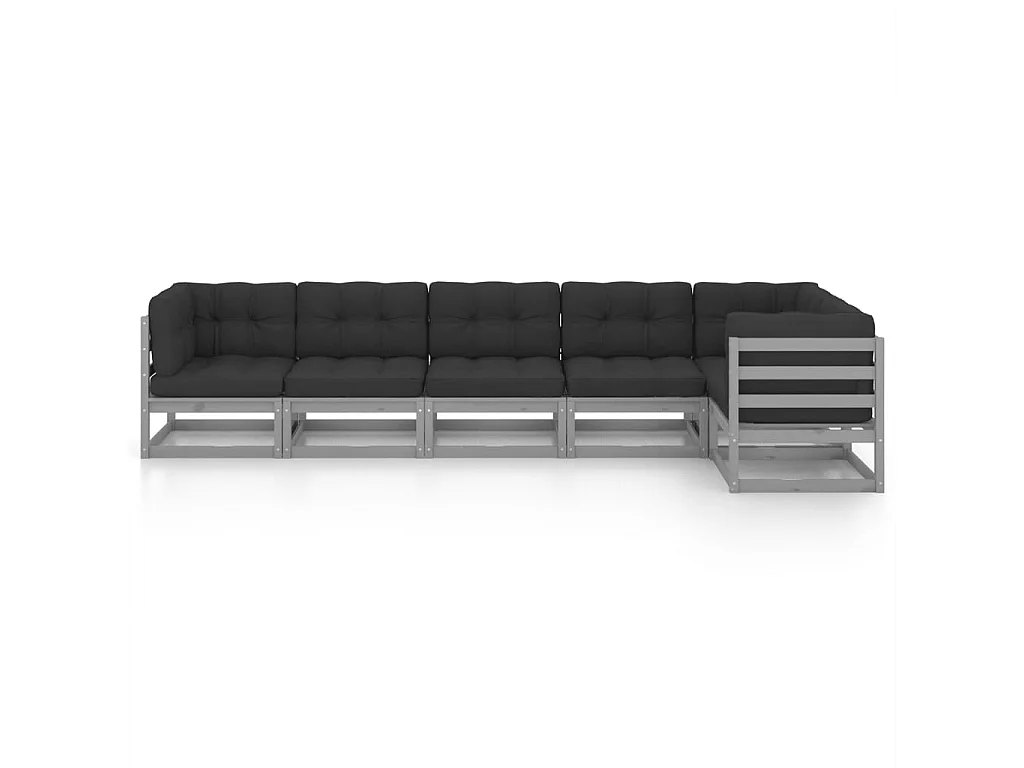 Juego de muebles de jardín 6 piezas y cojines madera pino maciza
