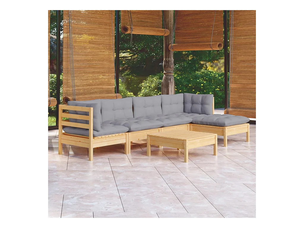Juego de muebles de jardín 6 pzas y cojines madera pino gris