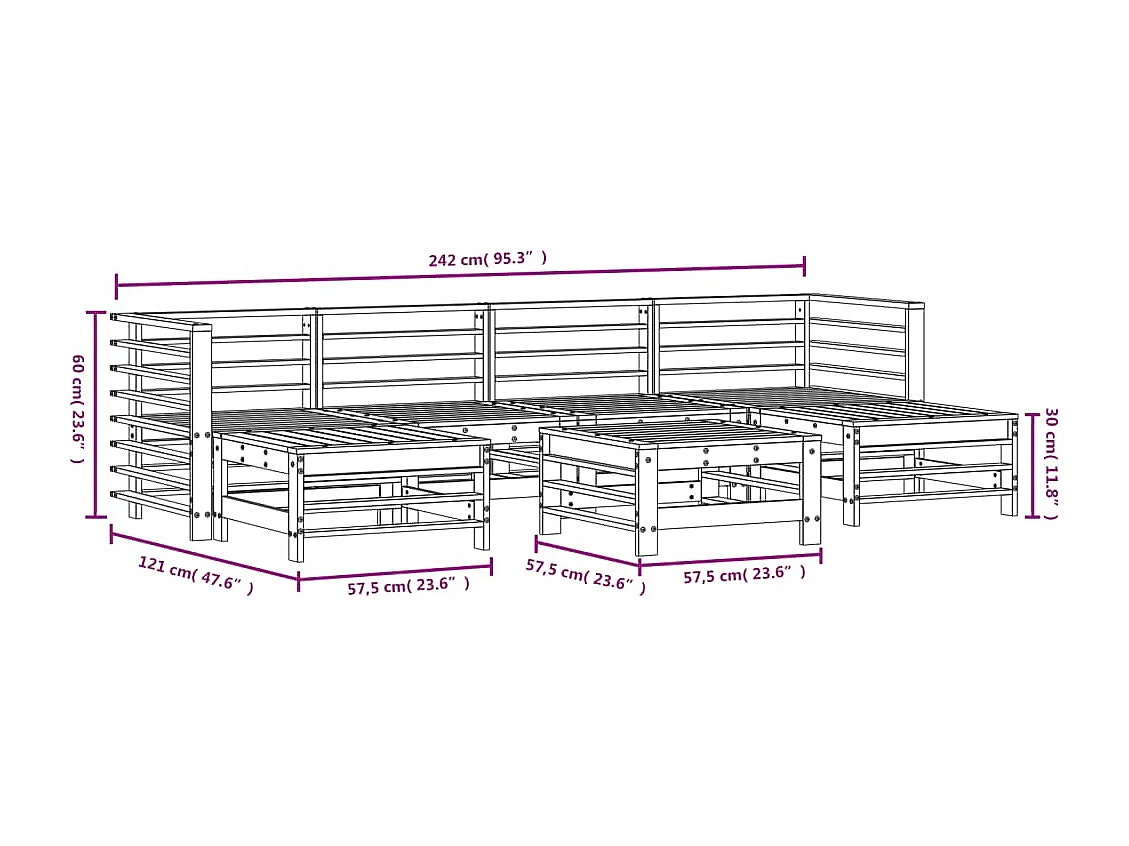 Juego de sofás de jardín 5 piezas madera de pino impregnada