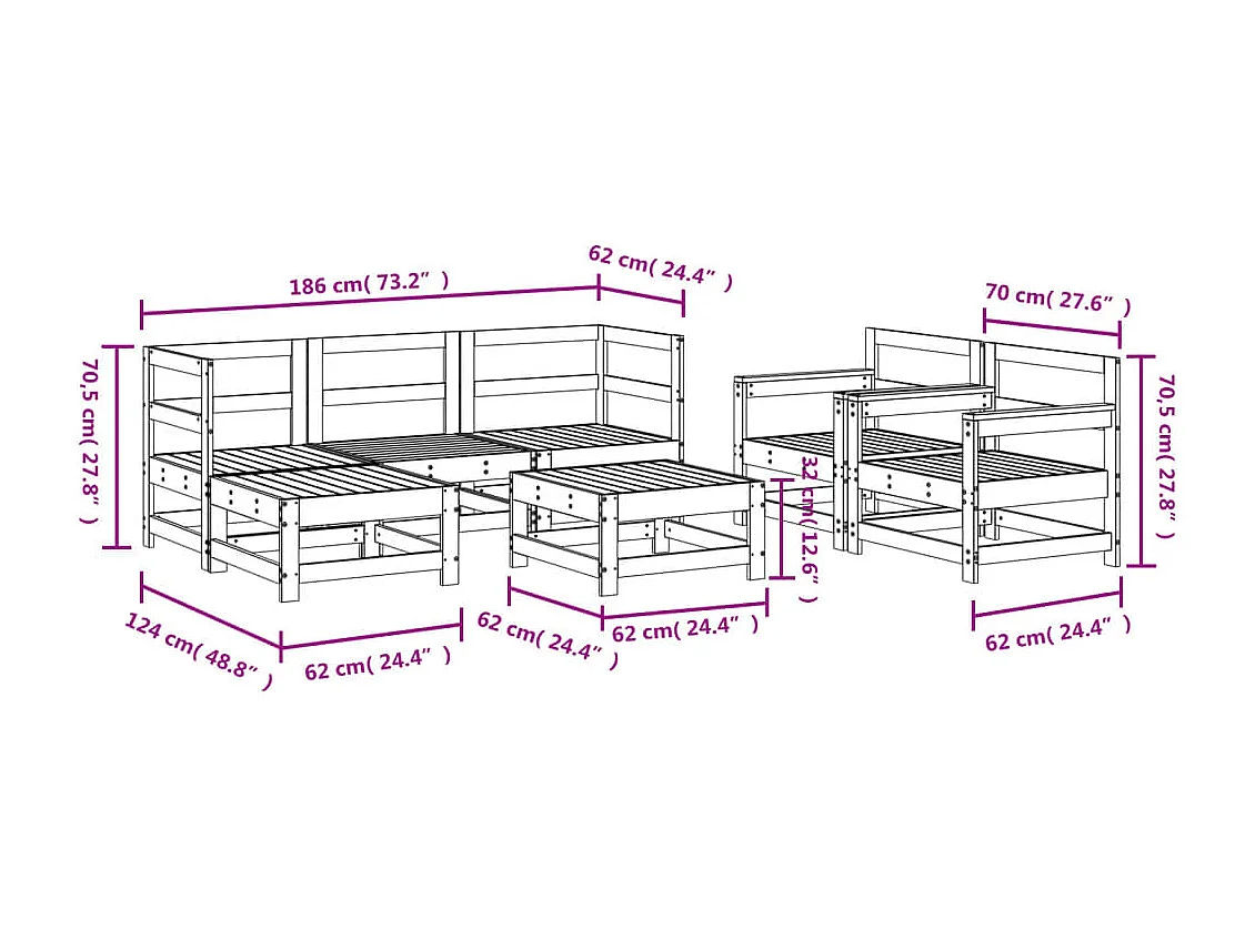 Juego de muebles de jardín 7 piezas madera maciza de pino
