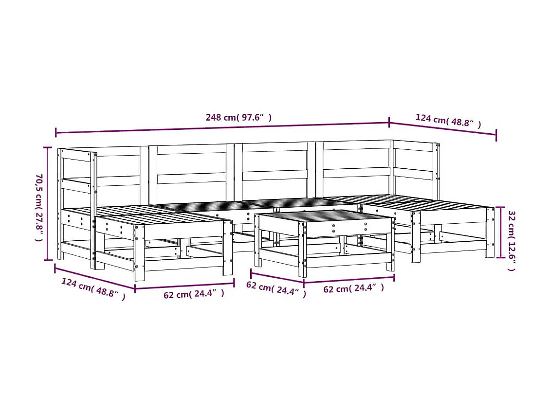 Juego de muebles de jardín 7 piezas madera maciza de pino