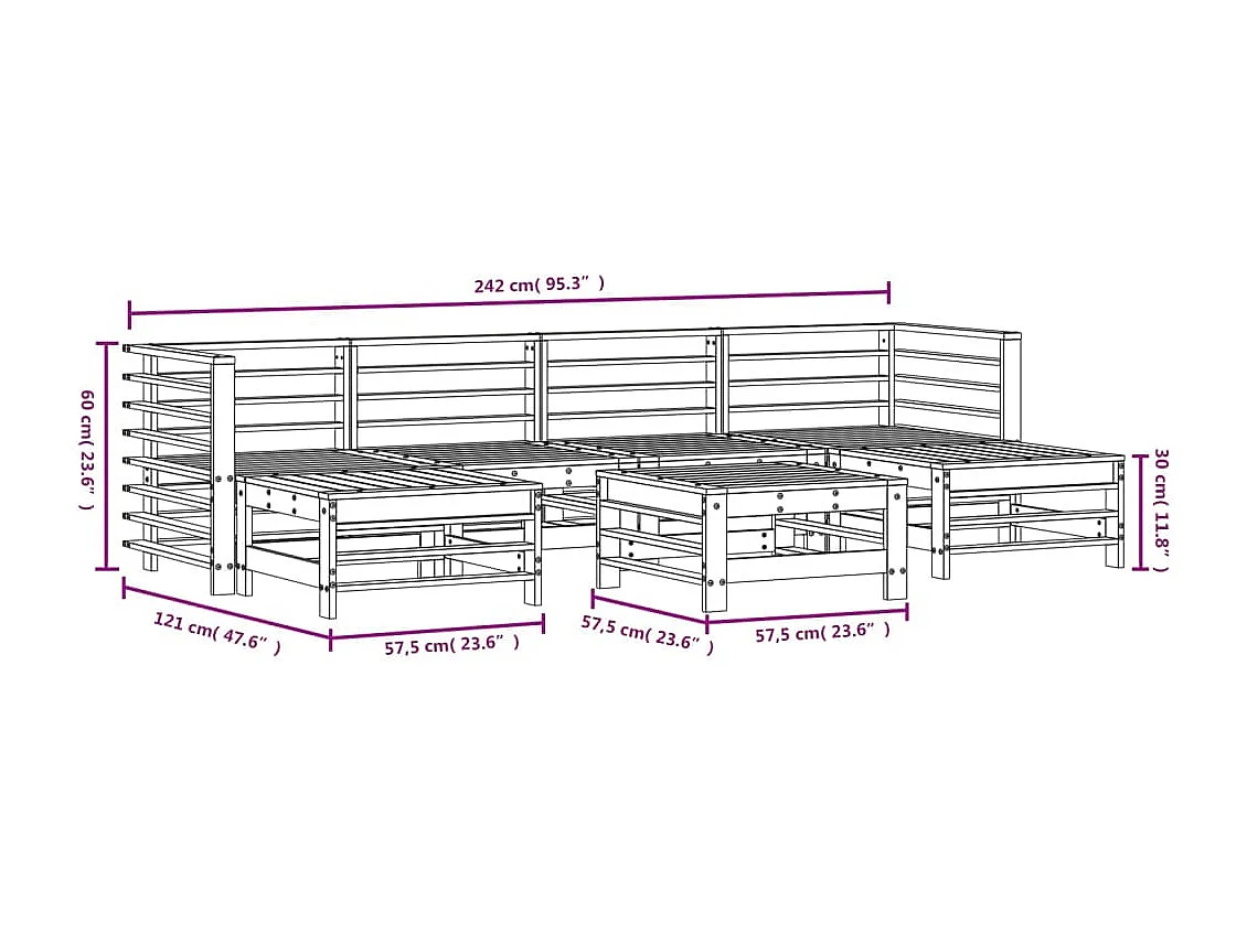 Juego de sofás de jardín 5 piezas madera de pino impregnada