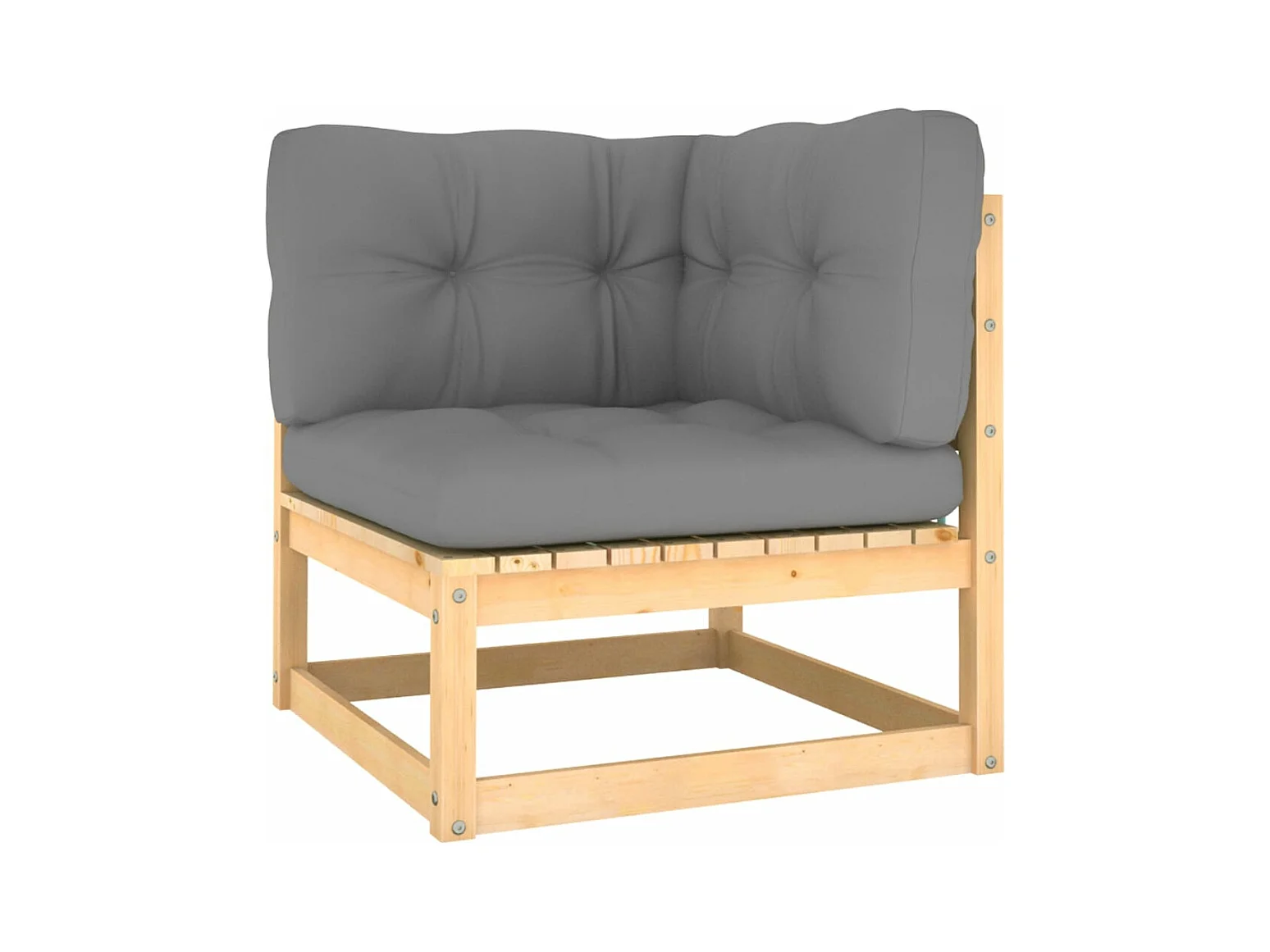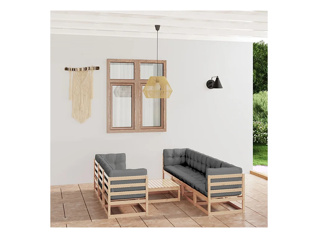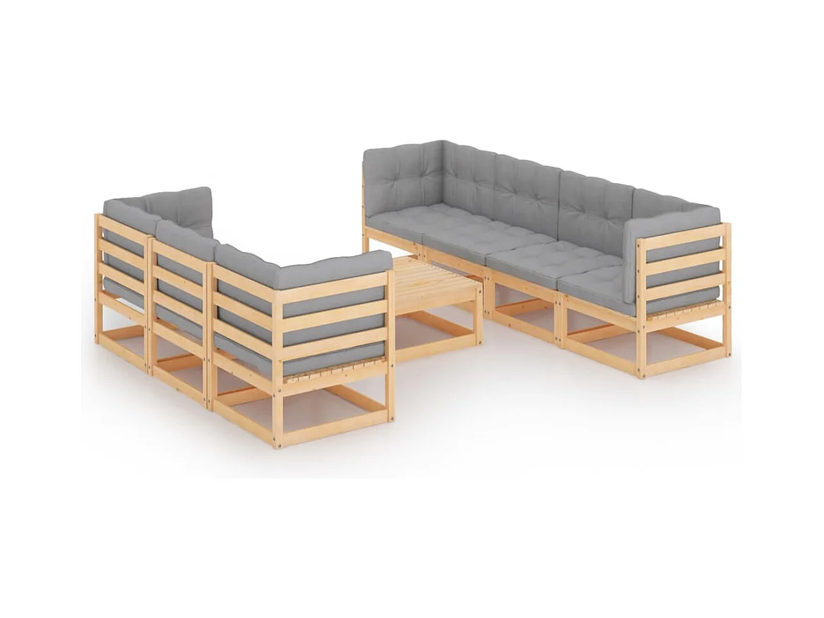 Juego de muebles de jardín 8 pzas y cojines madera pino gris