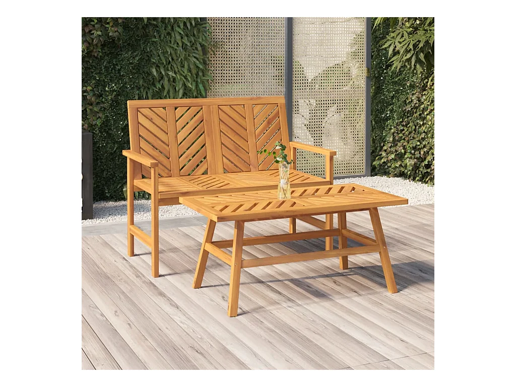 Juego de muebles de jardín de madera maciza de acacia de 2 piezas.