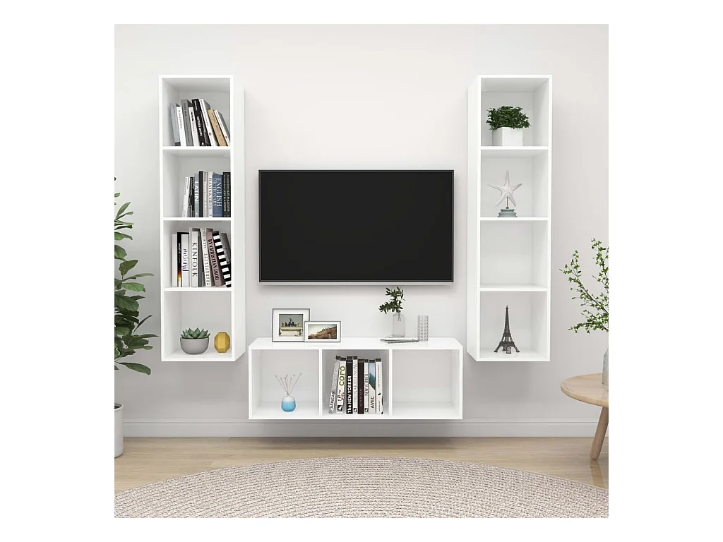 Juego de muebles de salón | Gabinetes de TV | Muebles de TV 3 piezas madera ingeniería blanco