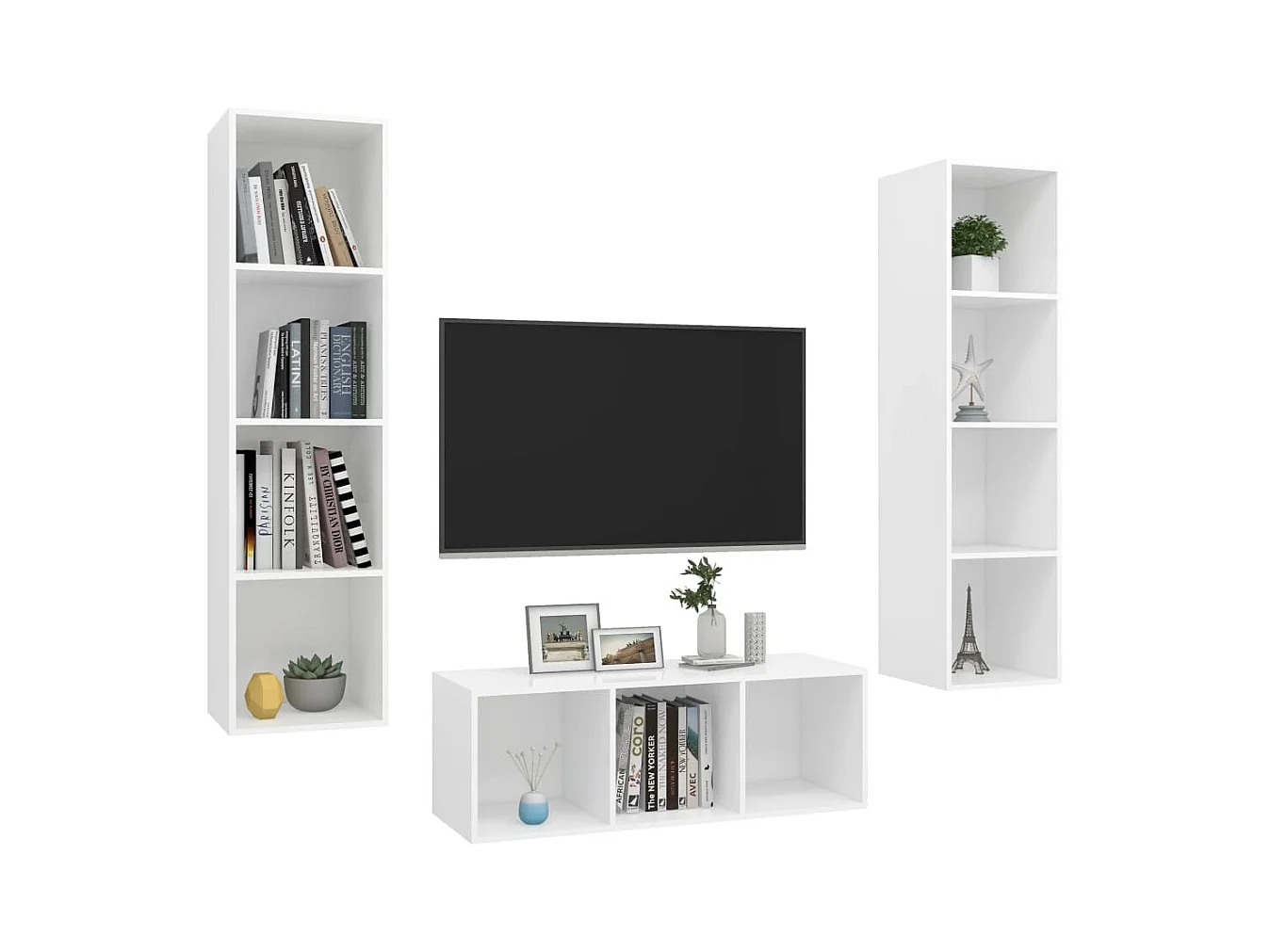 Juego de muebles de salón | Gabinetes de TV | Muebles de TV 3 piezas madera de ingeniería blanco