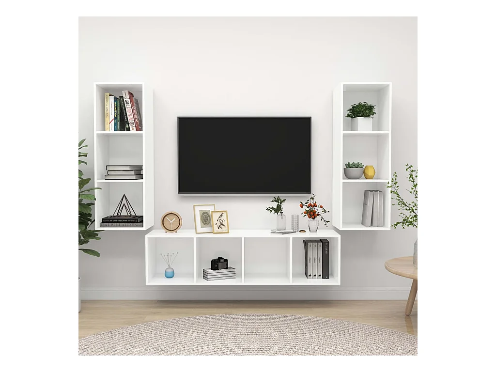 Set de muebles para TV | Gabinetes de TV | Muebles de salón 4 piezas madera contrachapada blanco