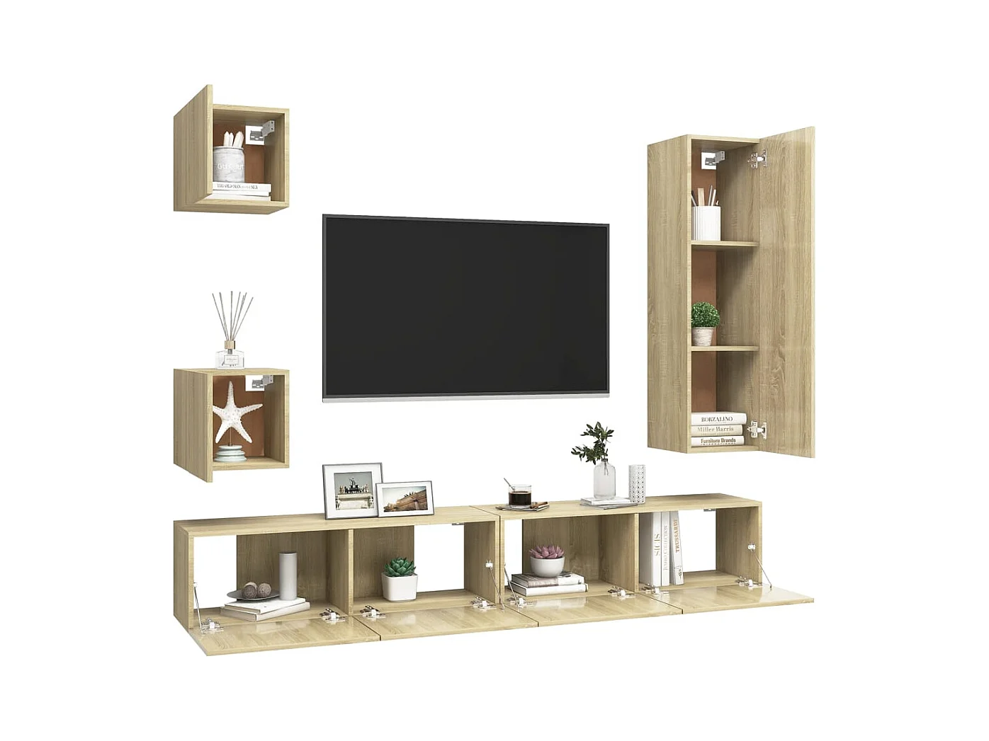 Juego de muebles de salón | Gabinetes de TV | Muebles de TV 5 piezas roble Sonoma