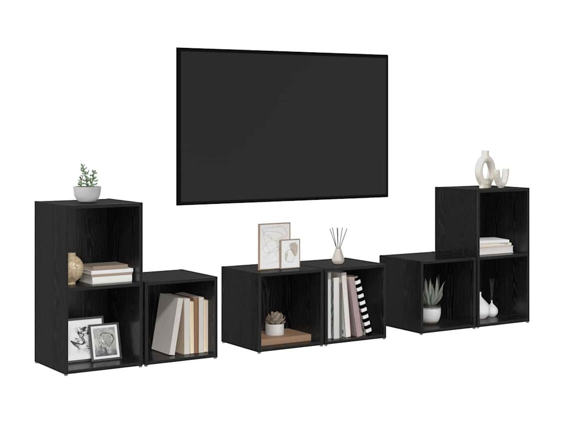 Juego de muebles de TV 6 pcs Roble Negro 37 x 35 x 72 cm