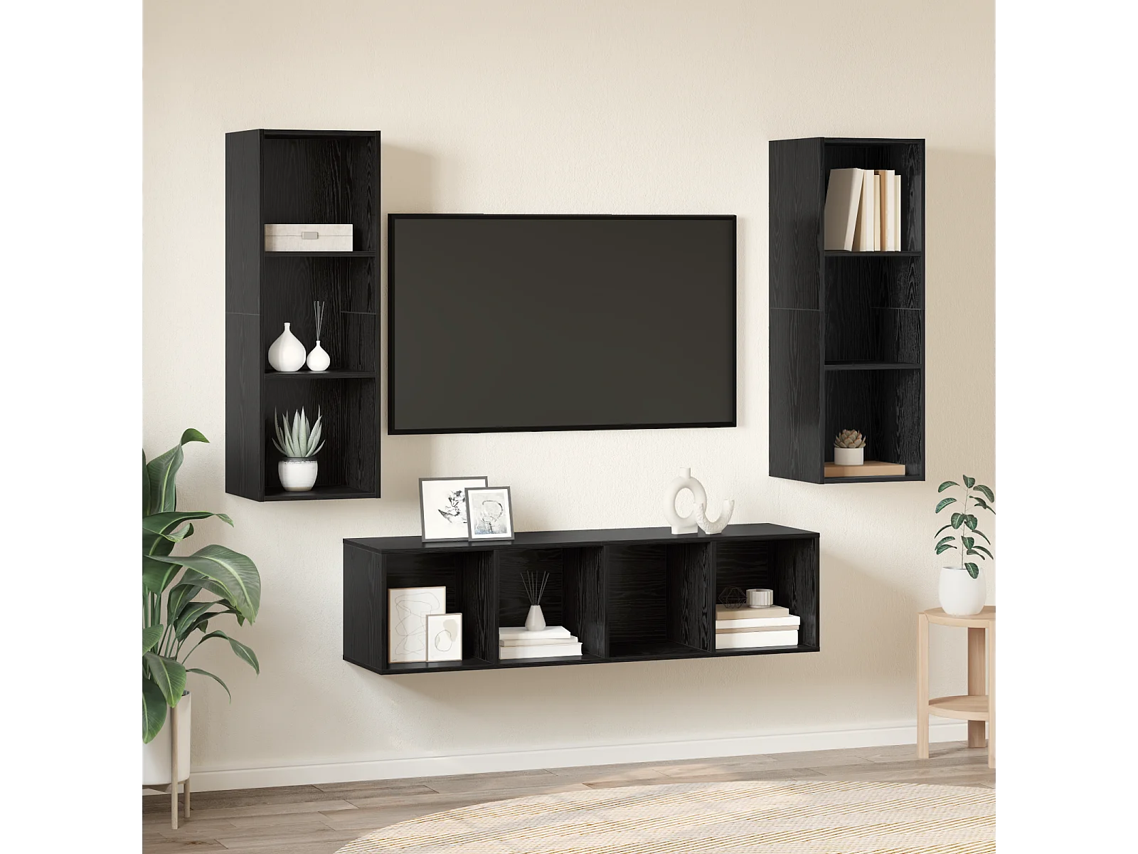 Juego de muebles de TV | Gabinete de TV | Mueble de salón 3 pcs Roble negro 37 x 37 x 142.5 cm