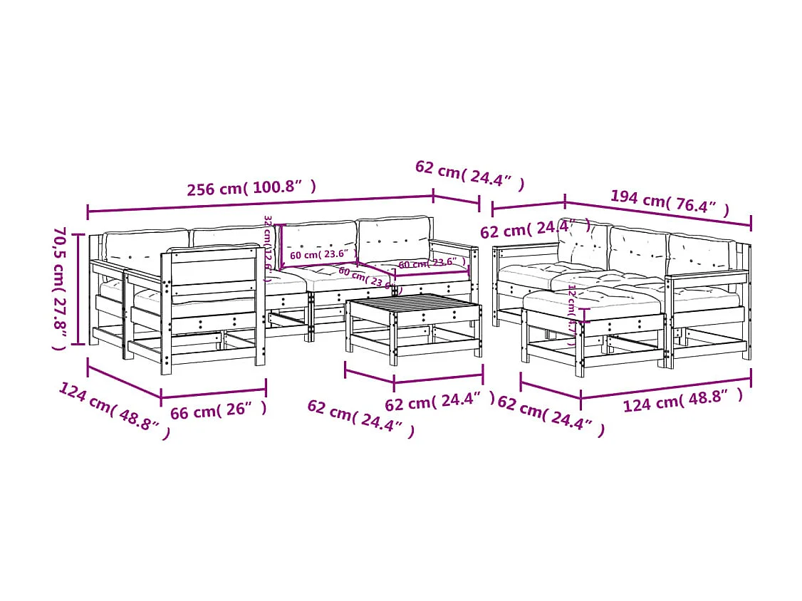 Juego de muebles jardín 10 piezas y cojines madera abeto Douglas