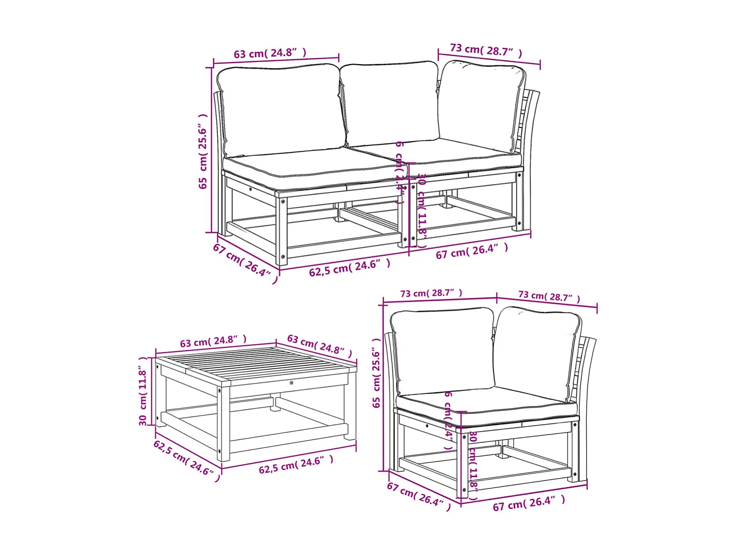 Muebles de jardín con cojines 5 piezas Madera maciza de acacia