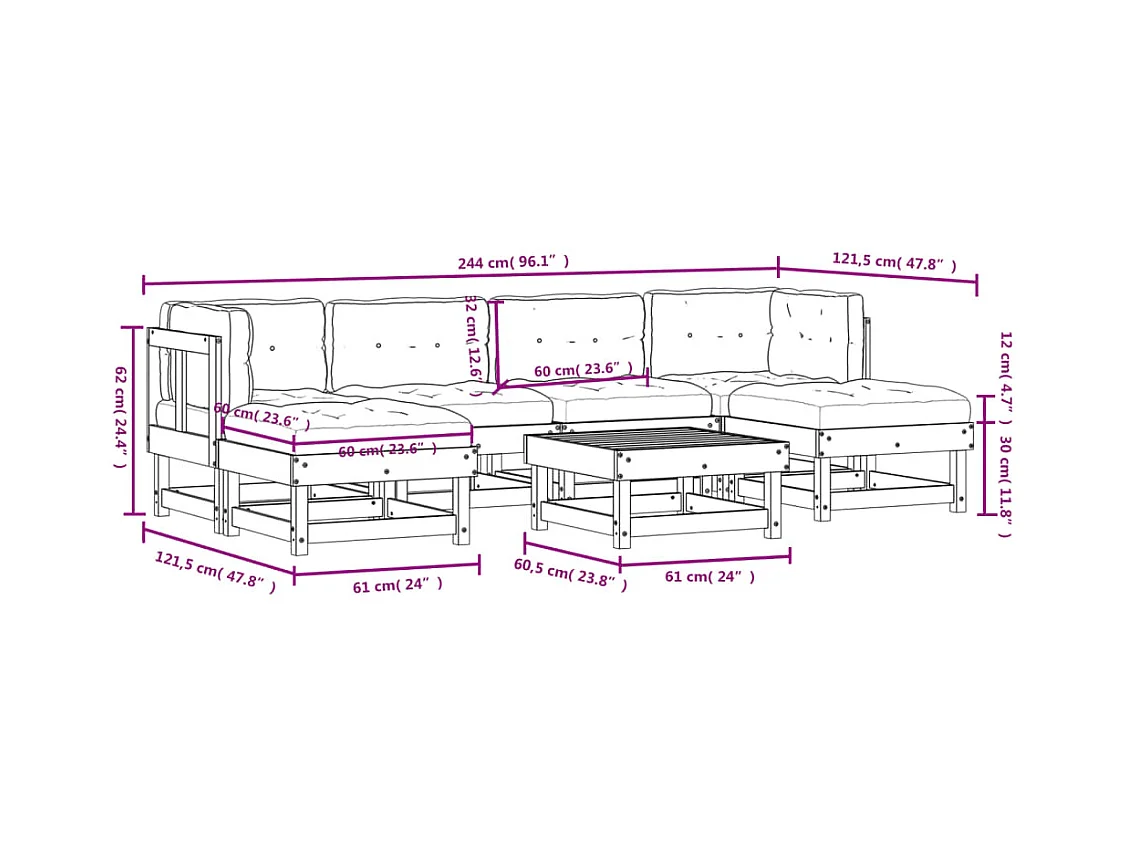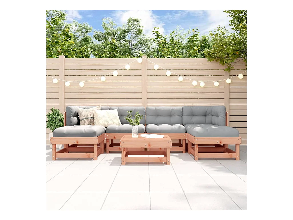 Juego de muebles jardín 7 piezas y cojines madera abeto Douglas