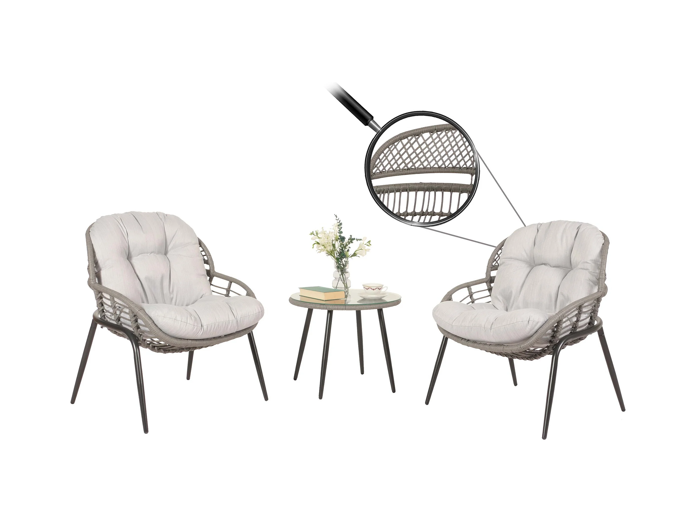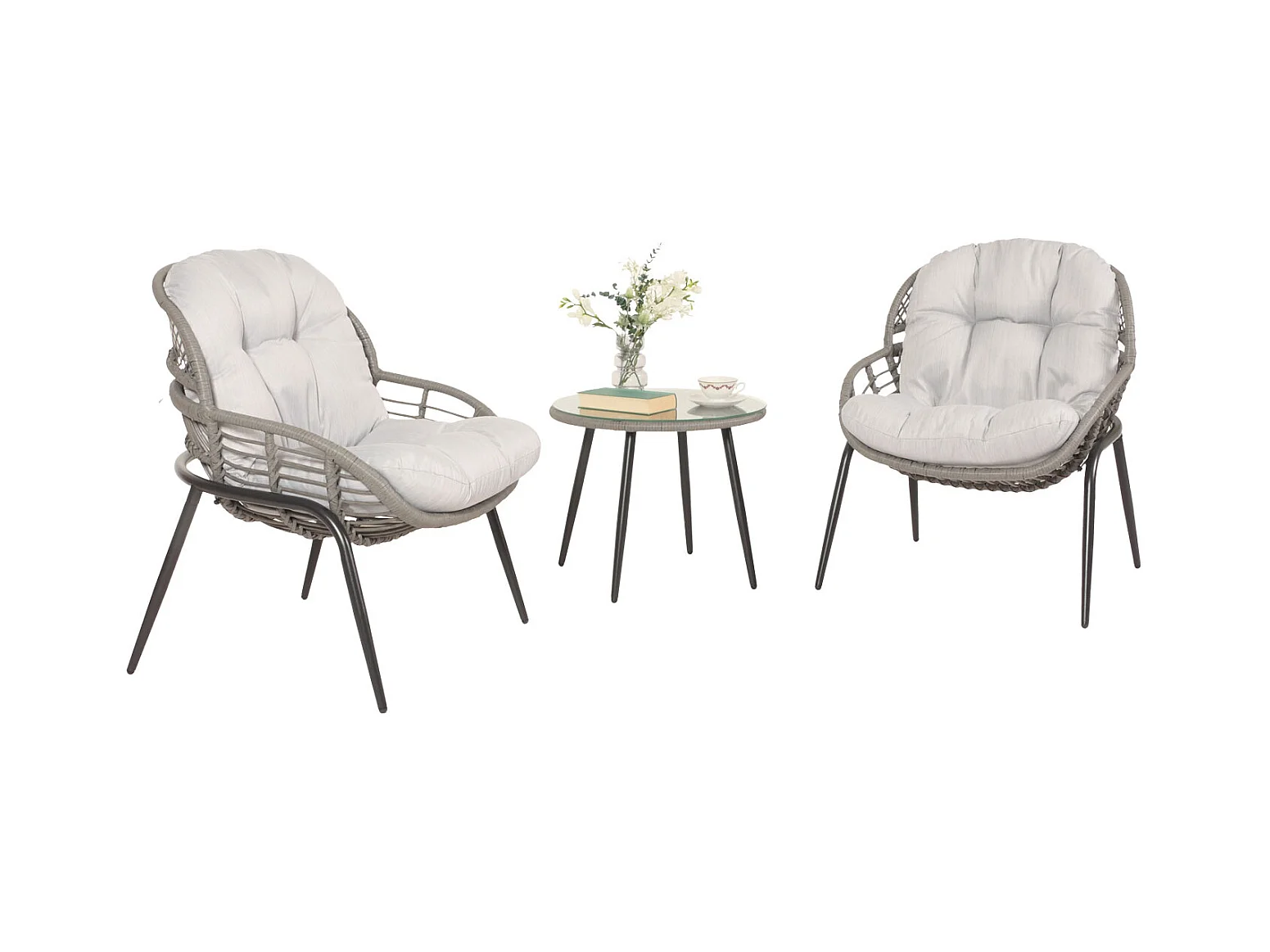 Conjunto de jardín 3 piezas bambú y cojines gris claro ES919583
