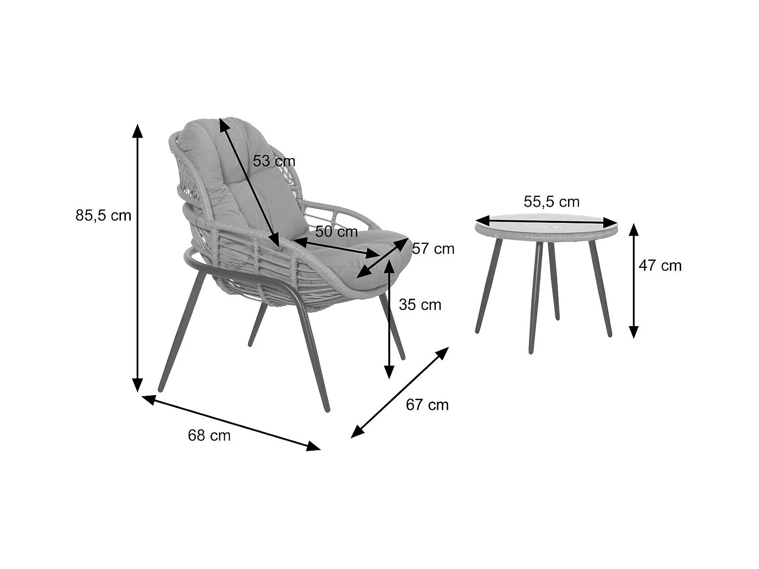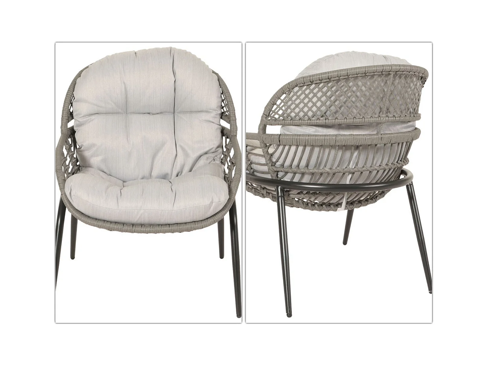 Juego de polirratán MCW-N33 (3 piezas), gris, tapicería gris claro
