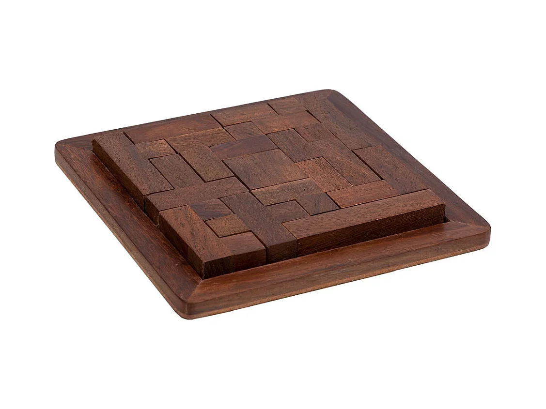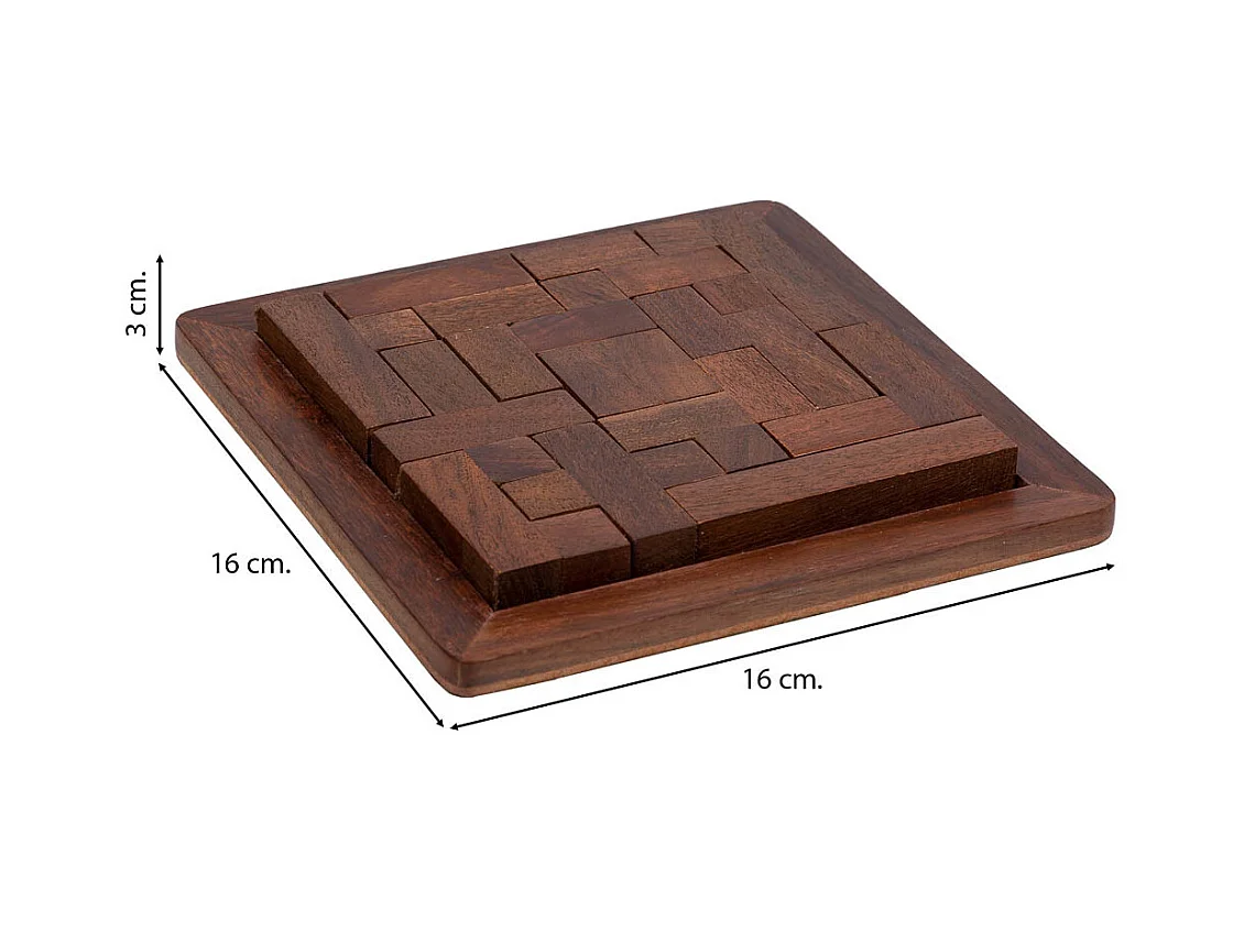 Juego de rompecabezas en zigzag de madera marrón 16x16x03