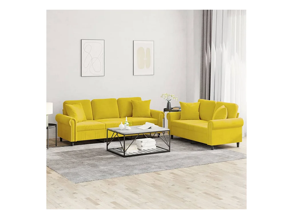 Juego de sofás con cojines 2 piezas terciopelo amarillo