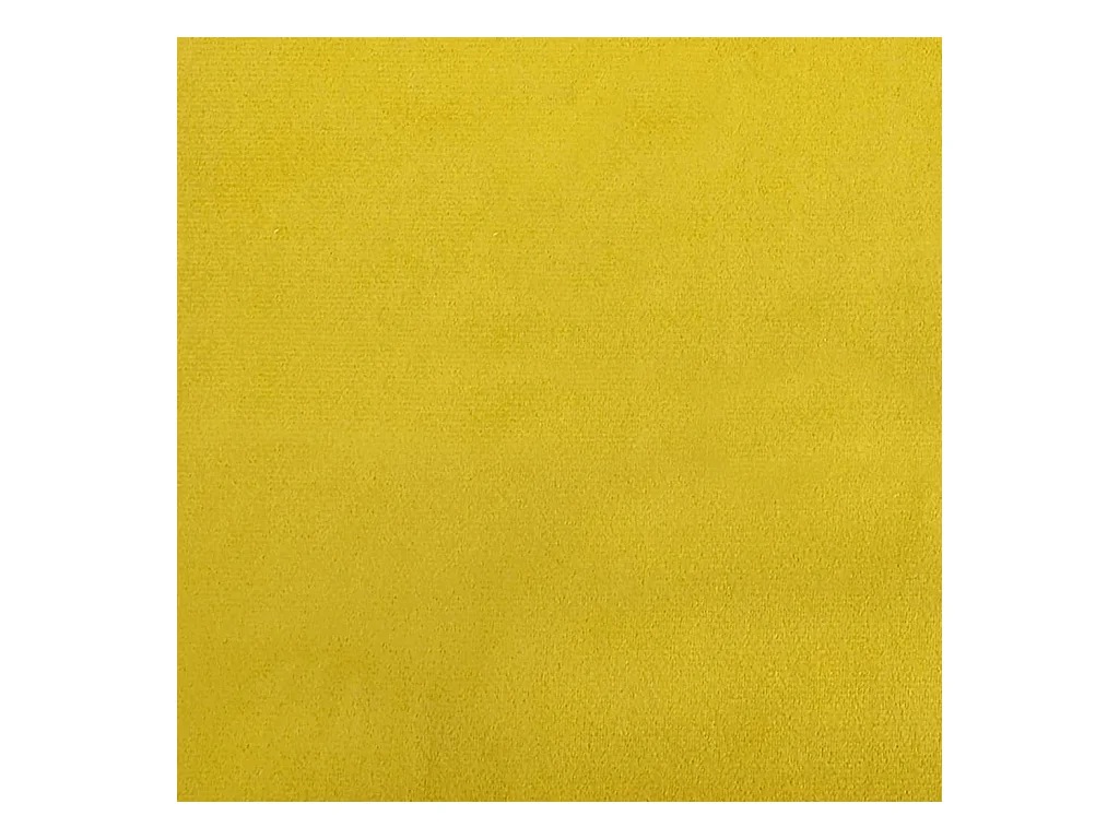 Puff tapizado con tejido aterciopelado mostaza con base dorada