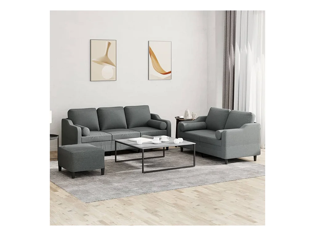 Juego de sofás con cojines 3 piezas tela gris oscuro