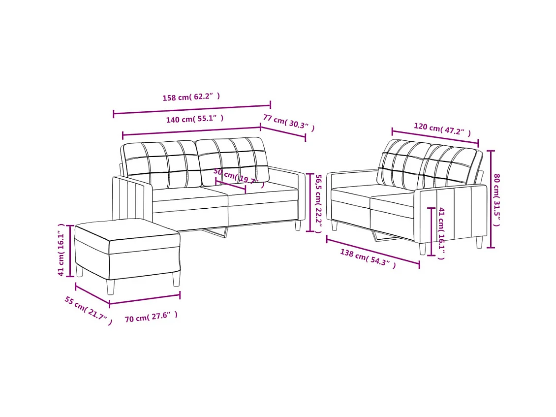 Juego de sofás con cojines 3 piezas tela gris taupe